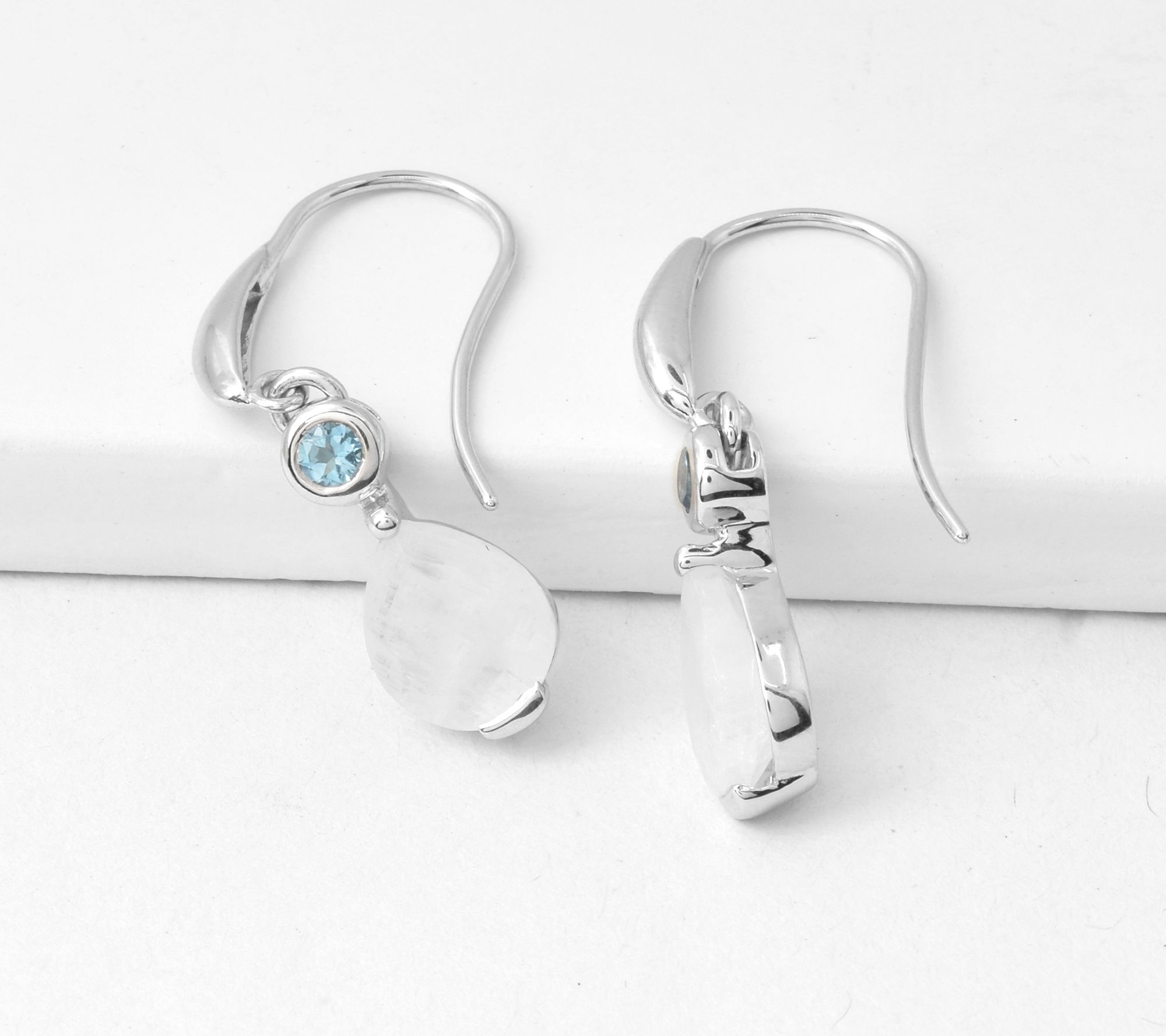 • Total Swiss blue topaz weight is approximately 0.30 carat; gemstone weight is not given for moonstone