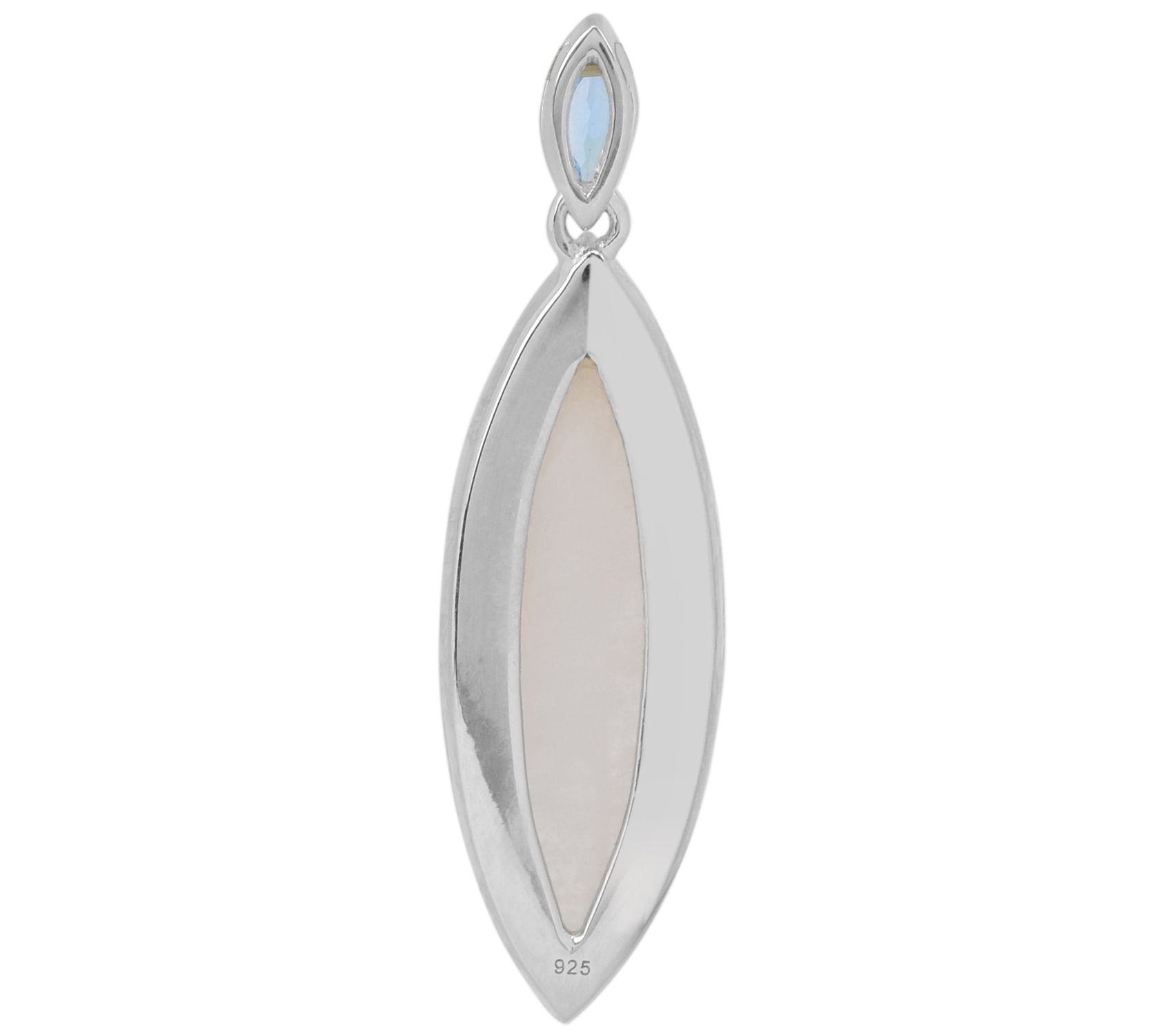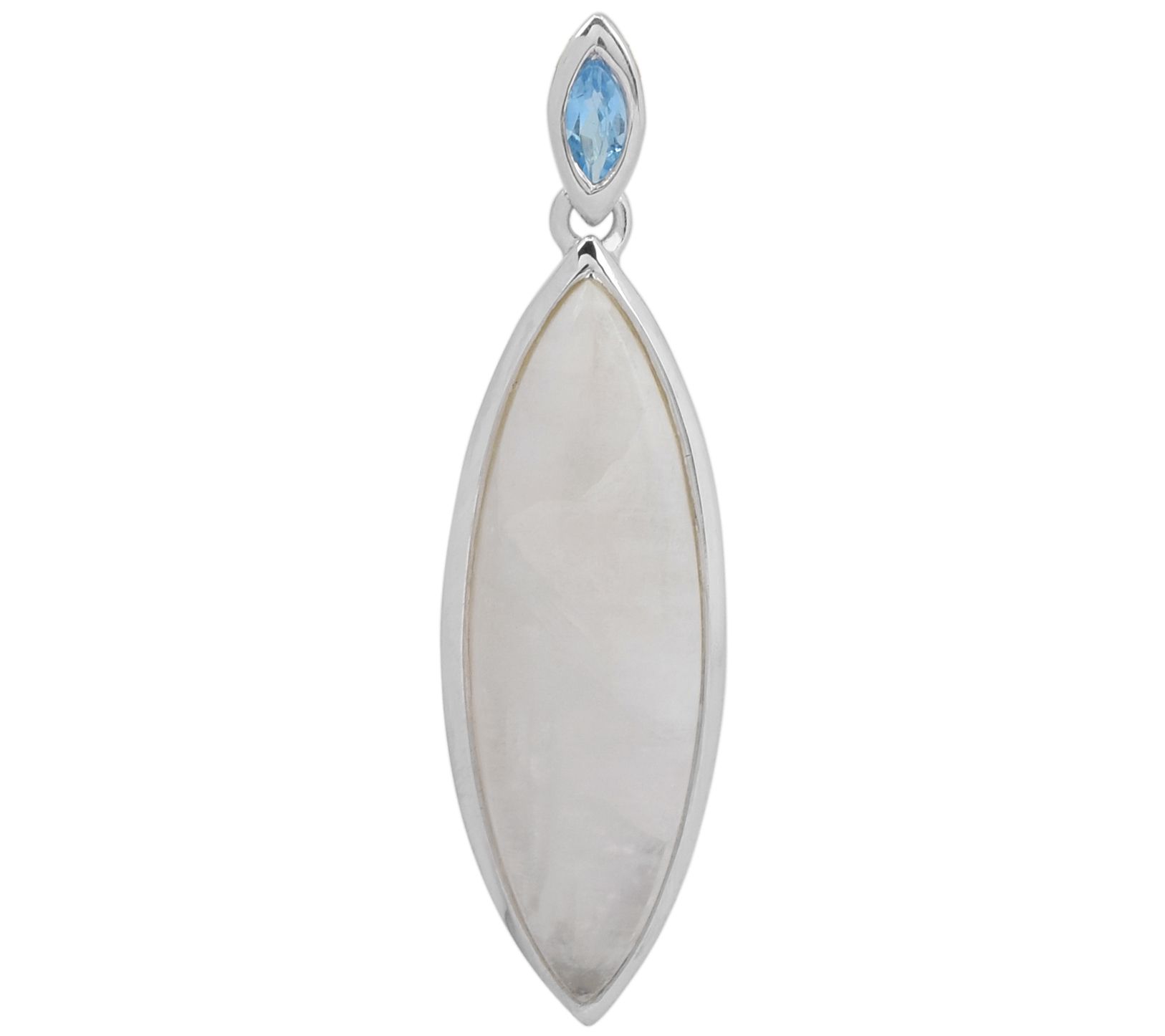 • Marquise-cut Swiss blue topaz at the top of a marquise-cut rainbow moonstone