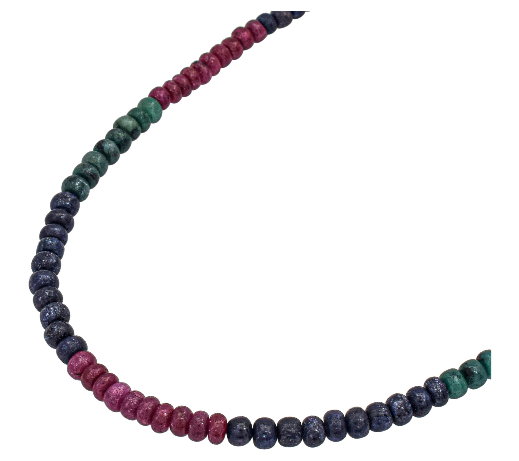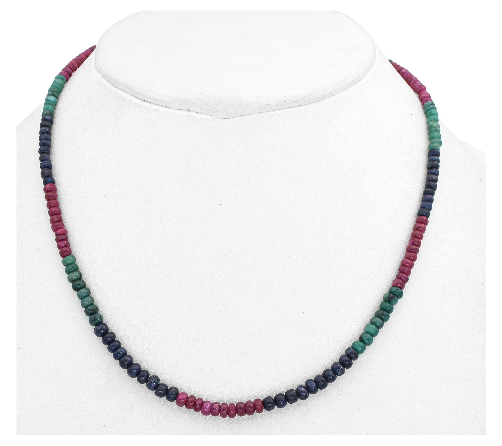 - Roundel-shaped, emerald-colored, ruby-colored, and sapphire-colored corundum beads; polished