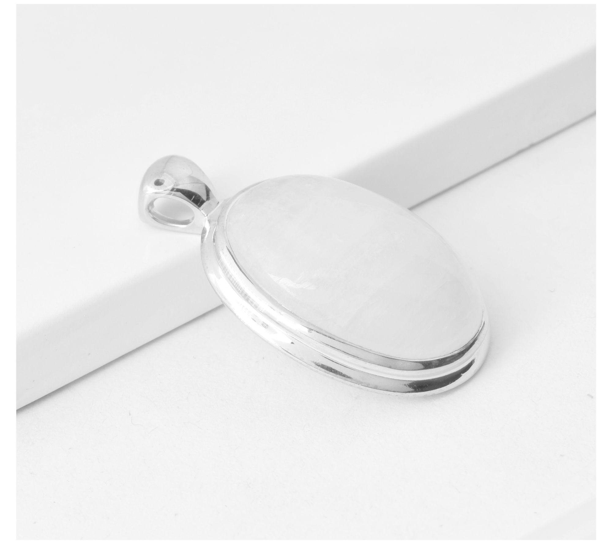 Sterling Silver Oval Rainbow Moonstone Pendant