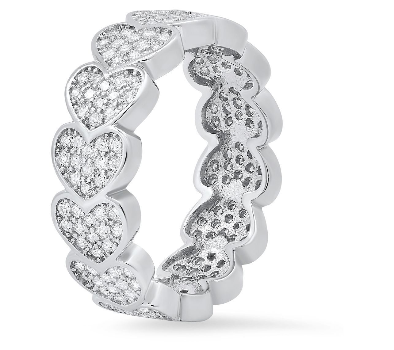 Sterling Silver Pave Hearts Eternity Band Ring