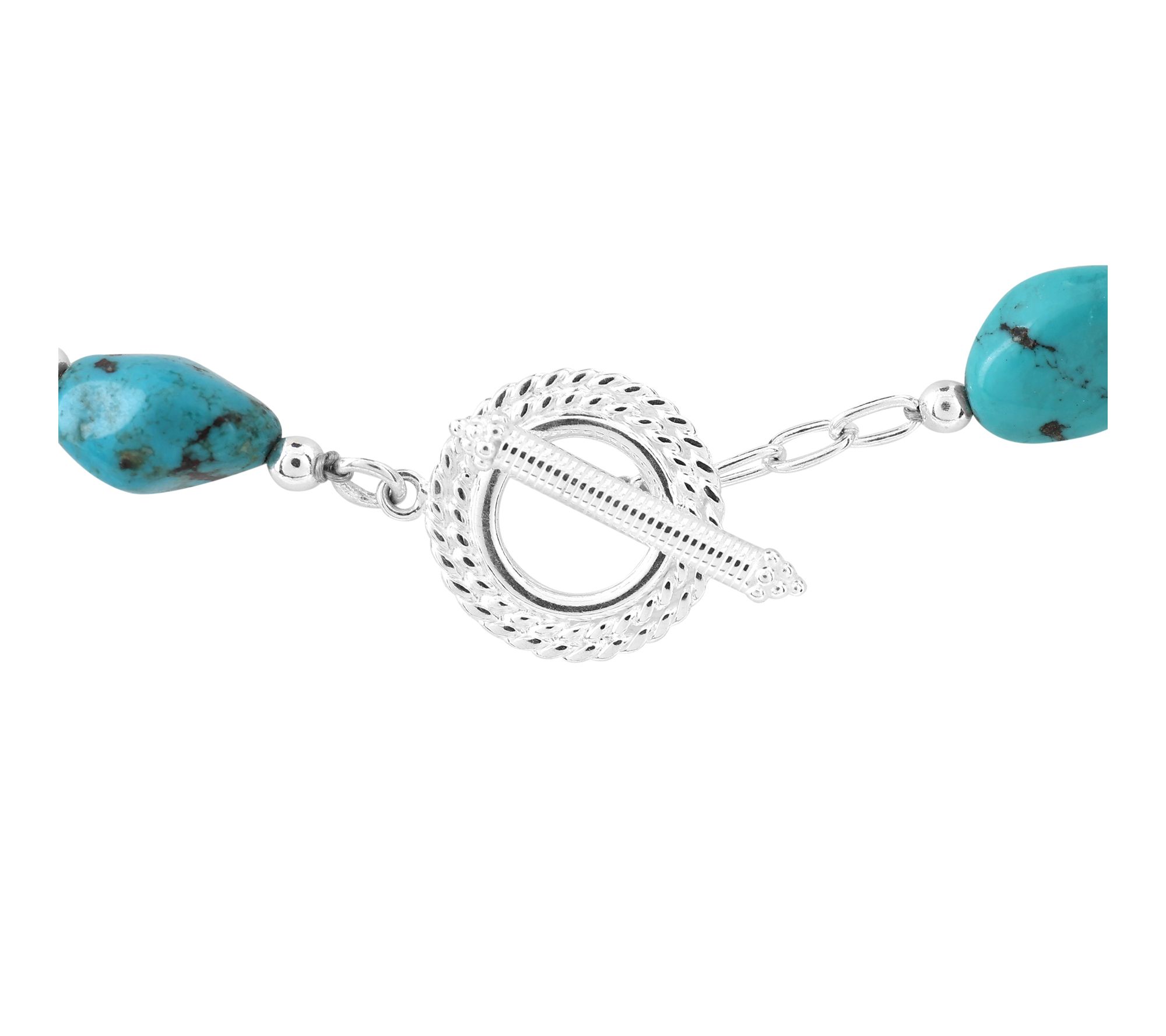 Grace every moment with the polished glow of this sterling silver turquoise beaded necklace. Vibrant blue nuggets shimmer elegantly, whether you're enjoying a weekend brunch or adding color to an evening look, while the comfortable toggle clasp makes it easy to wear and style. From the cool tones to the thoughtful craftsmanship, this necklace is sure to brighten any day.