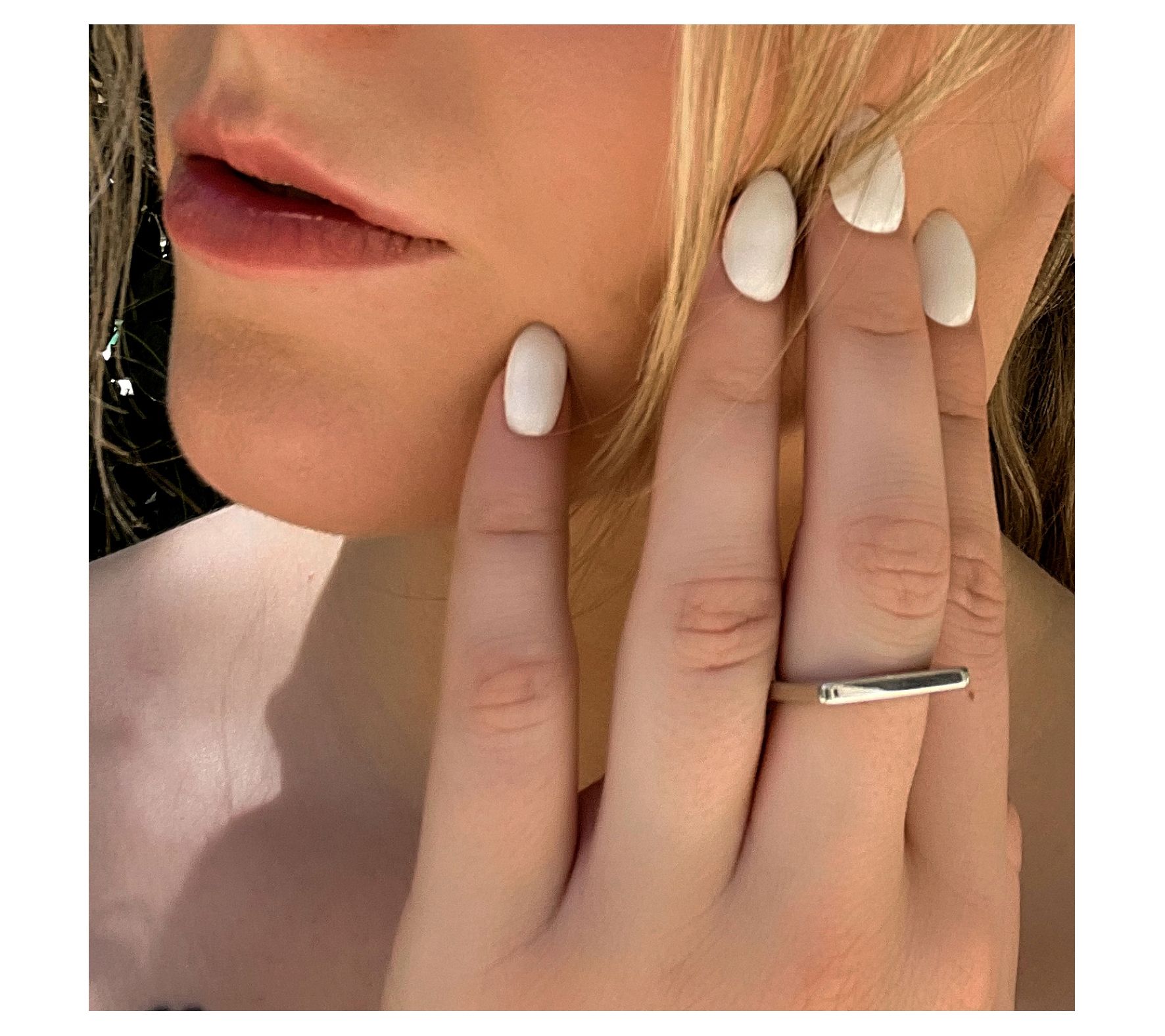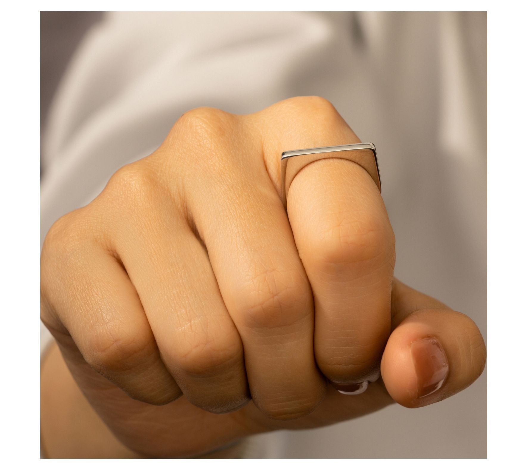 With a thin rectangular signet design in shiny platinum-plated sterling silver, this ring is a cool accessory for a concert, an evening out, or your everyday-casual style.