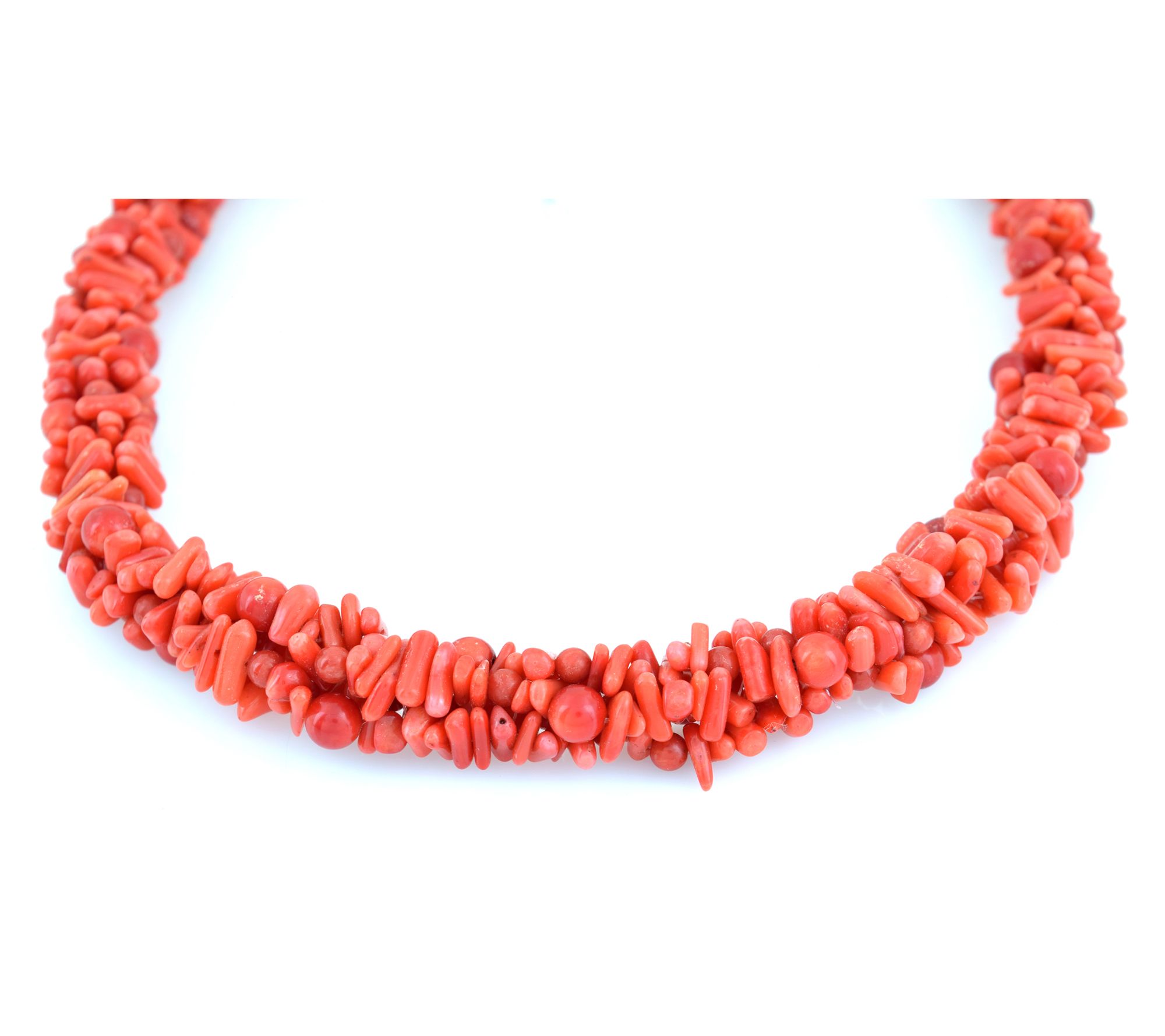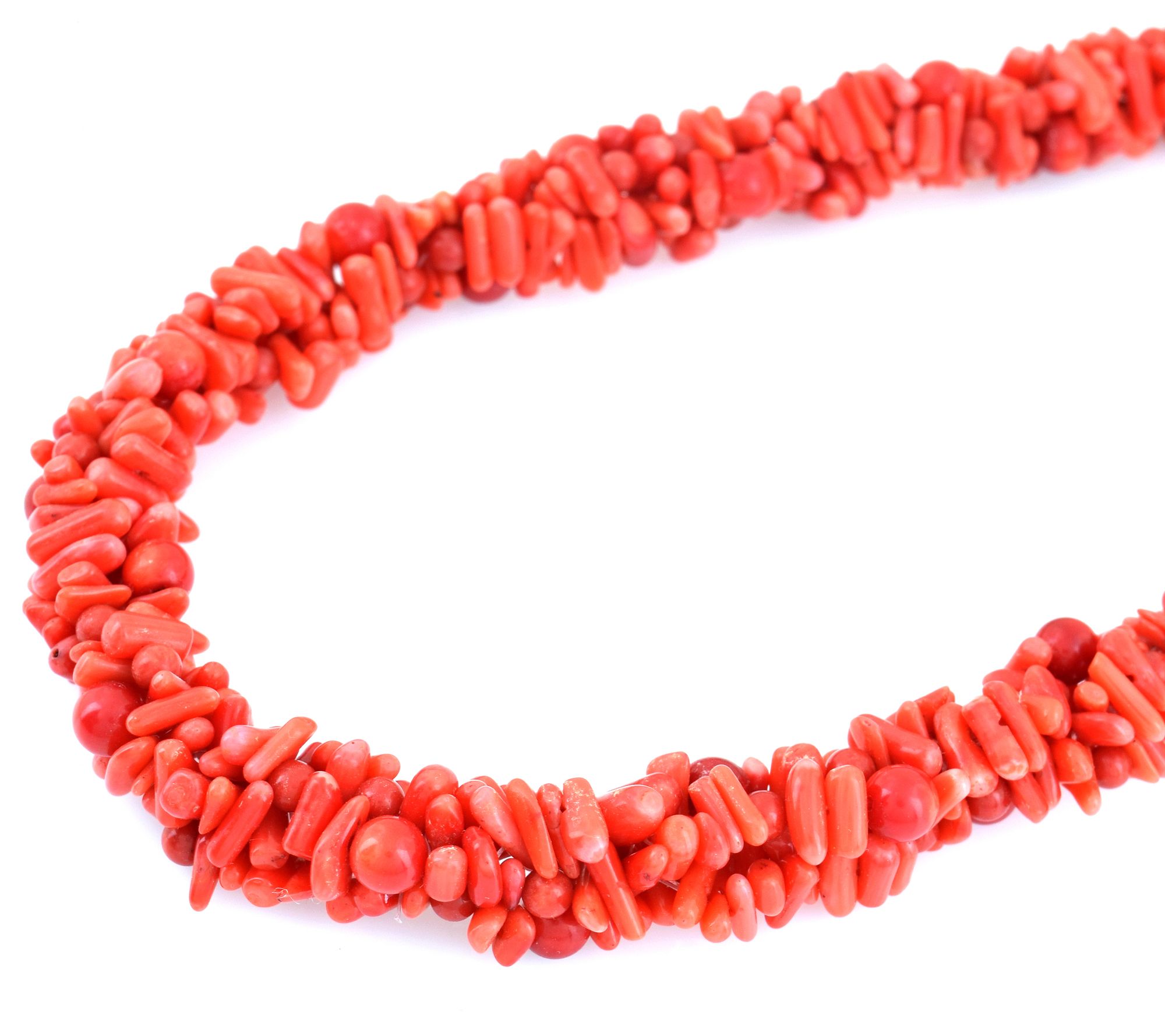 • Beaded necklace with round and uncut red dyed bamboo beads