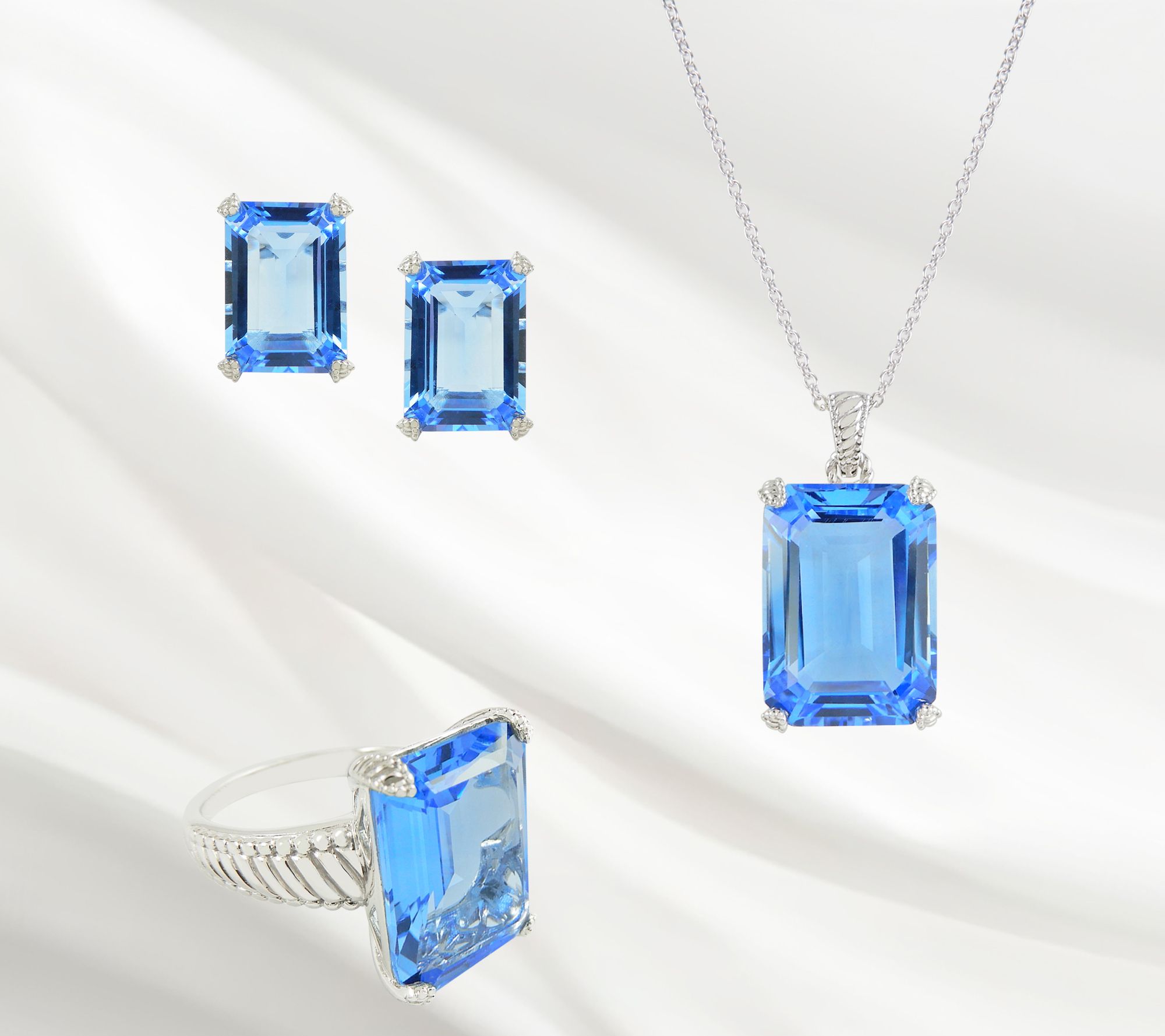• Total simulated gemstone weights are approximate: Simulated blue quartz 14.60 carats; Simulated green amethyst 13.70 carats