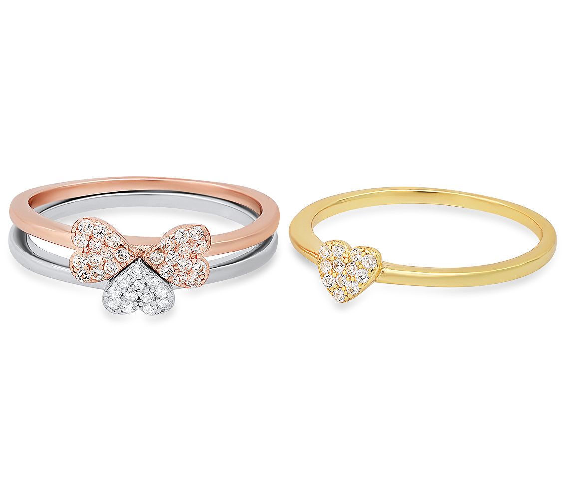 Celebrate love's versatility with this tri-color stackable ring set. Featuring three rings, each adorned with a heart motif, this set allows you to express your style uniquely. Stack them for a bold statement or wear them individually for a touch of romance. From the everyday to special occasions, these rings are a testament to love's enduring charm.