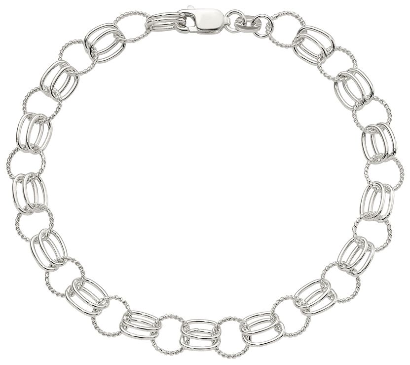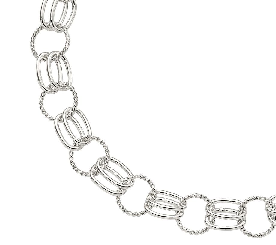 Alternating round and oval links add texture and dimension to this sterling silver bracelet.