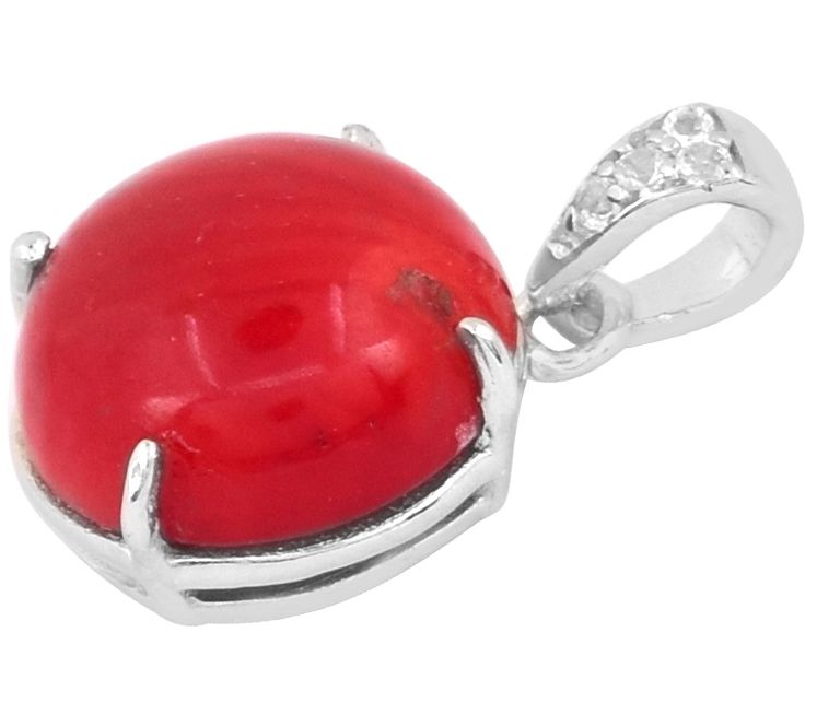 Sterling Sterling Red Bamboo Coral & White Topaz Pendant