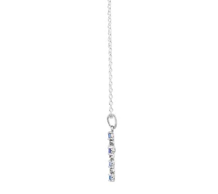 Faithfully yours. This sterling silver cross pendant features tanzanite gemstones with a diamond accent between each. Wear it as a constant reminder of your divine devotion.