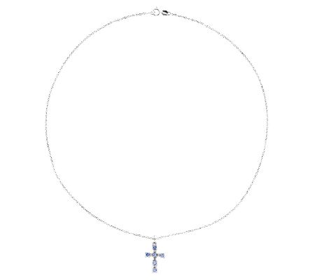Sterling Tanzanite Cross Pendant w/ 18" Chain