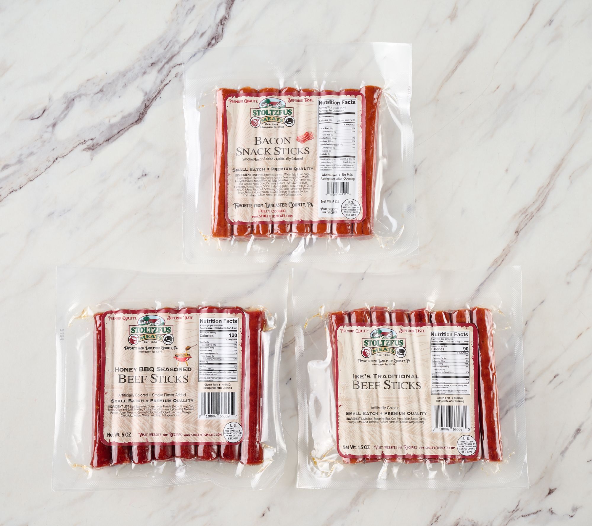 Snack time gets a delicious upgrade with these Pennsylvania Dutch beef snack sticks, offering plenty of flavorful protein in every bite. Great for stashing in your gym bag or packing for road trips, this set of three eight-packs means you'll always have a savory, satisfying option on hand. From Stoltzfus Meats.