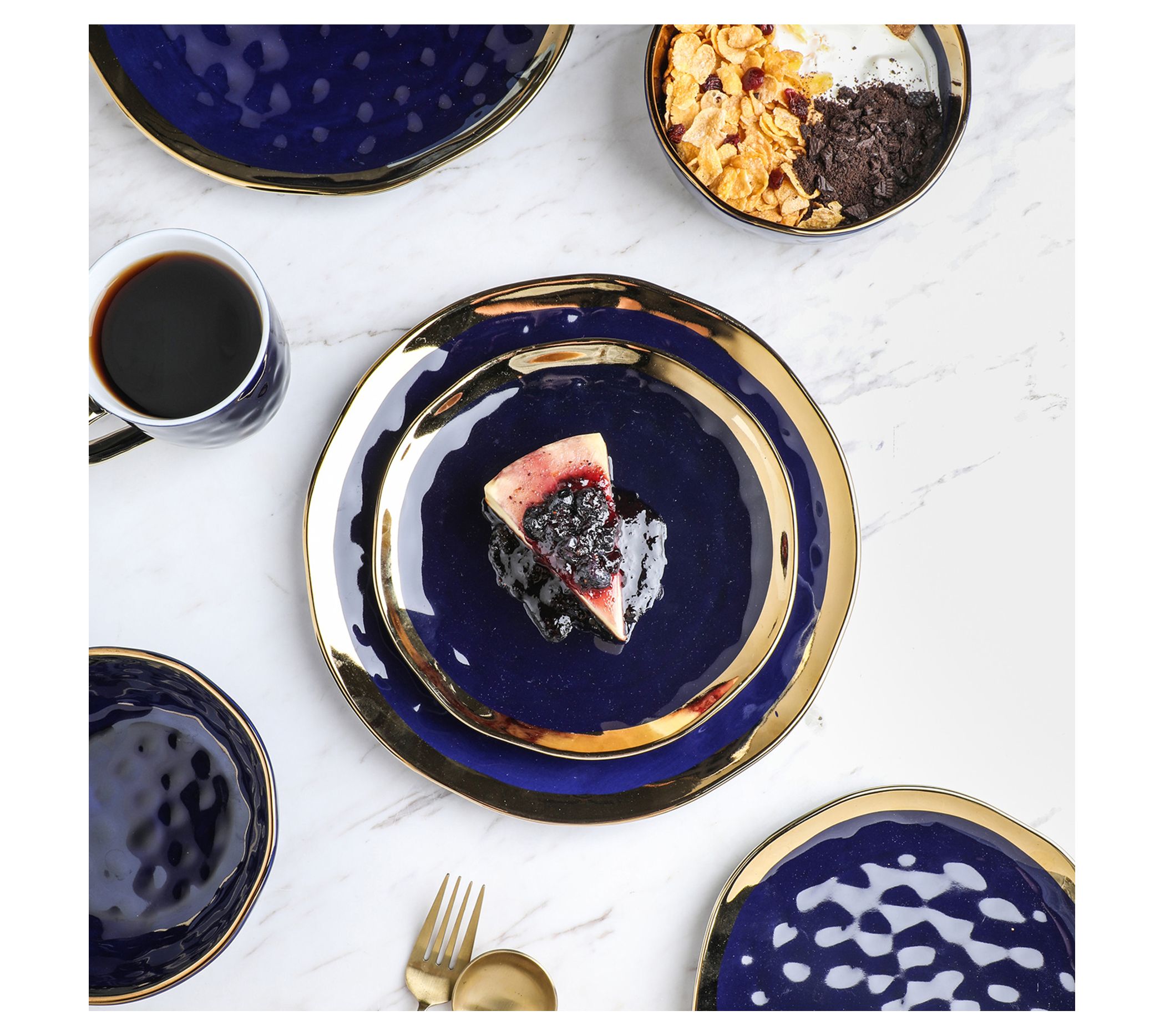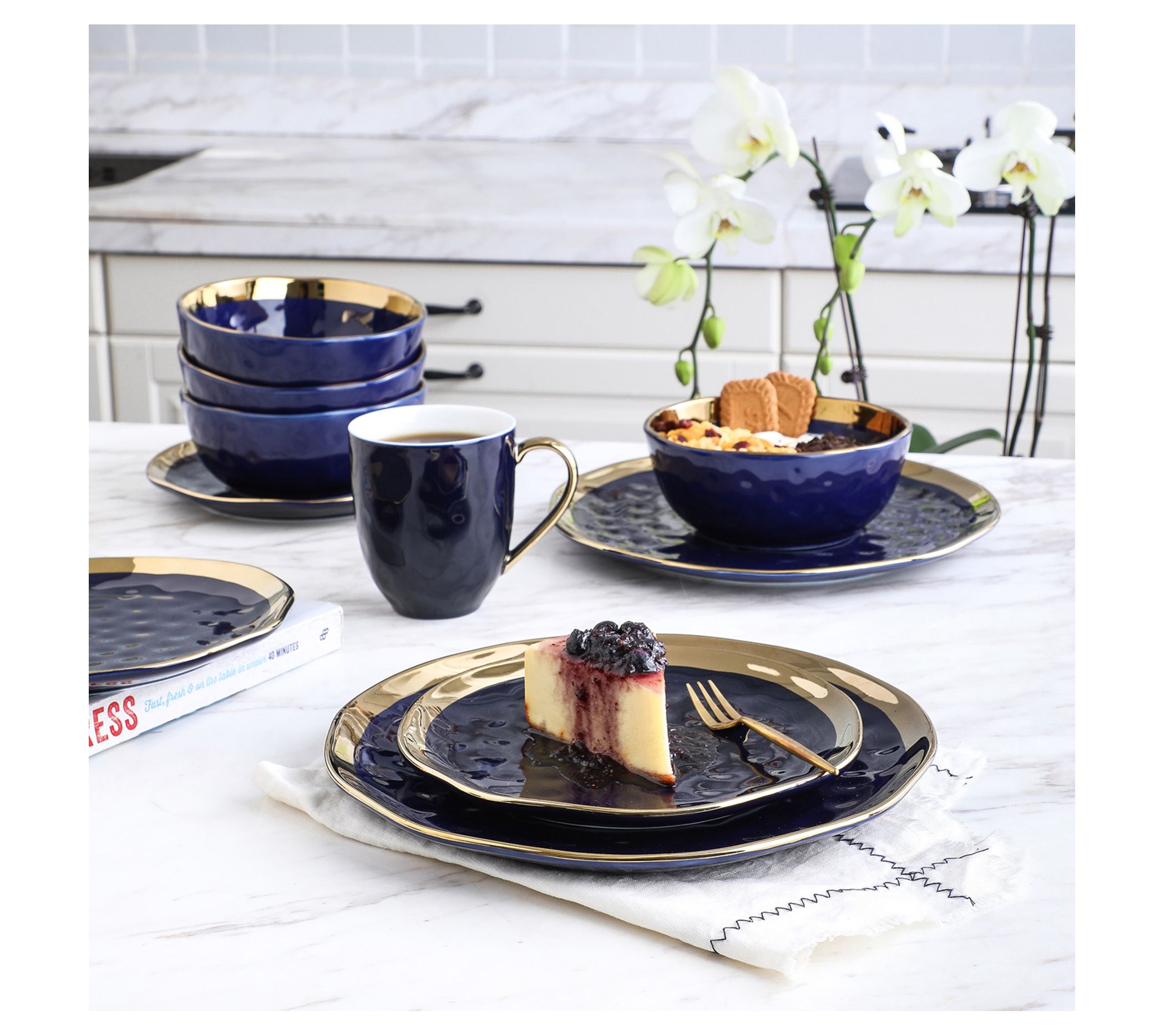 Bring a glam vibe to your meals with this standout, goldtone halo accented porcelain dinnerware service for four, perfect for casual to formal dining. From Stone + Lain.