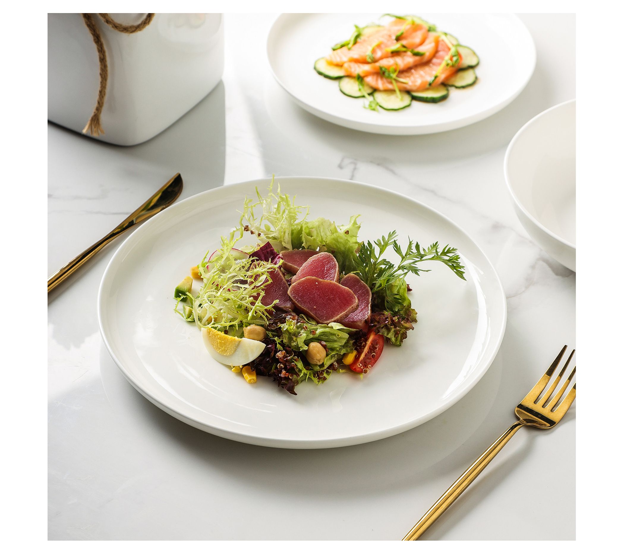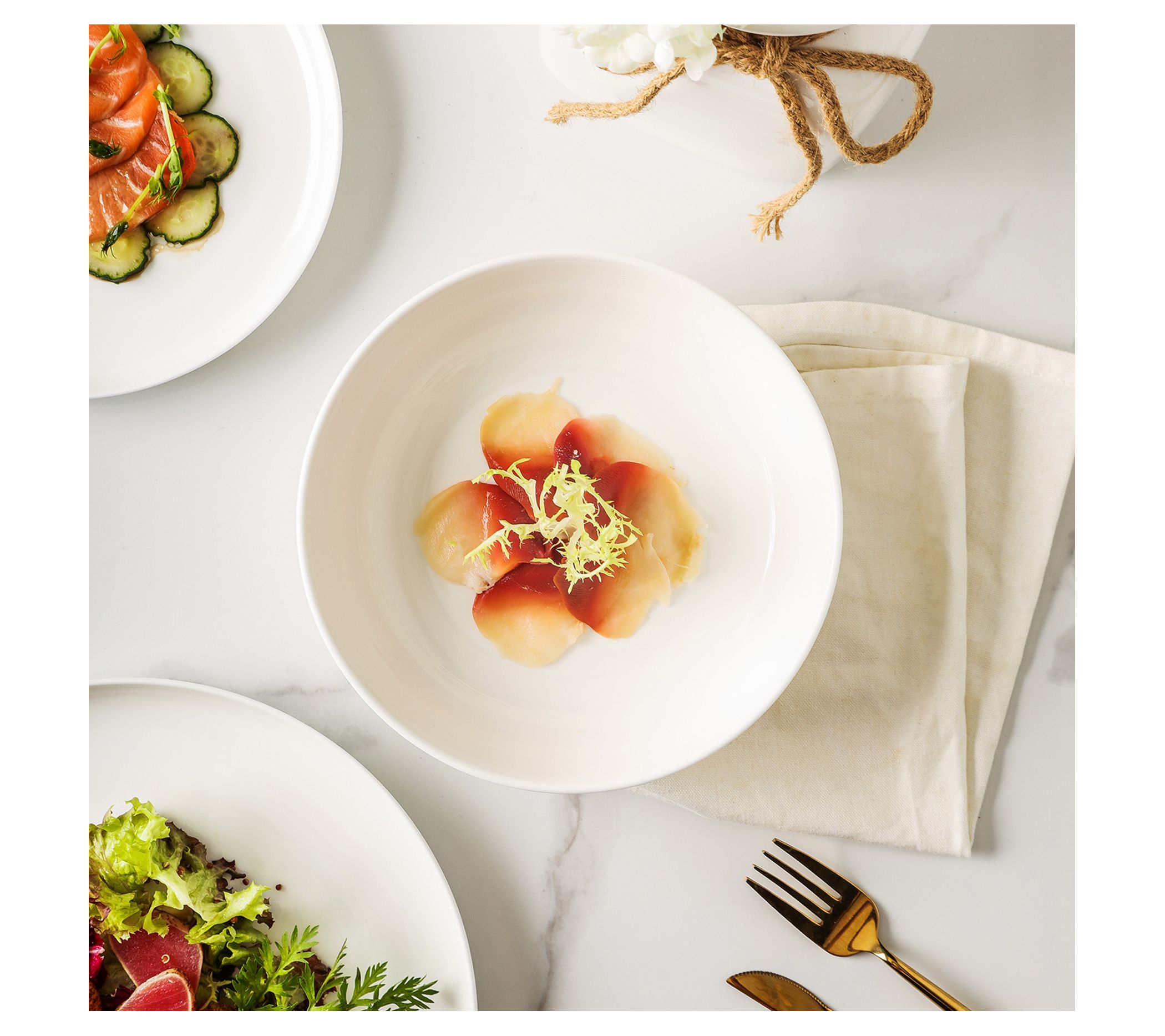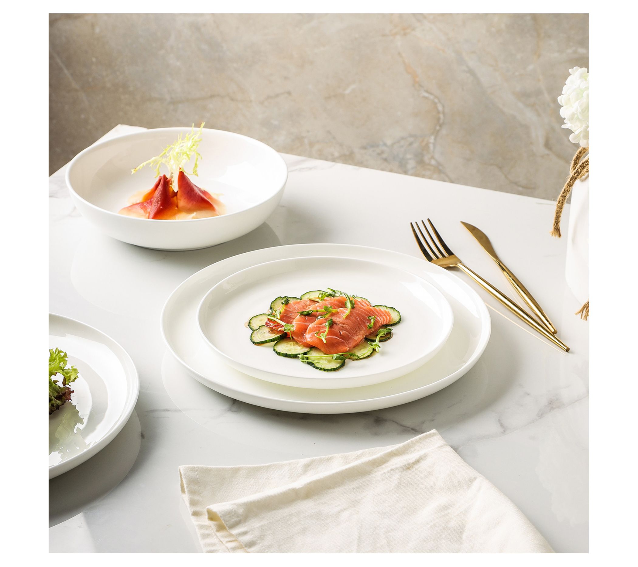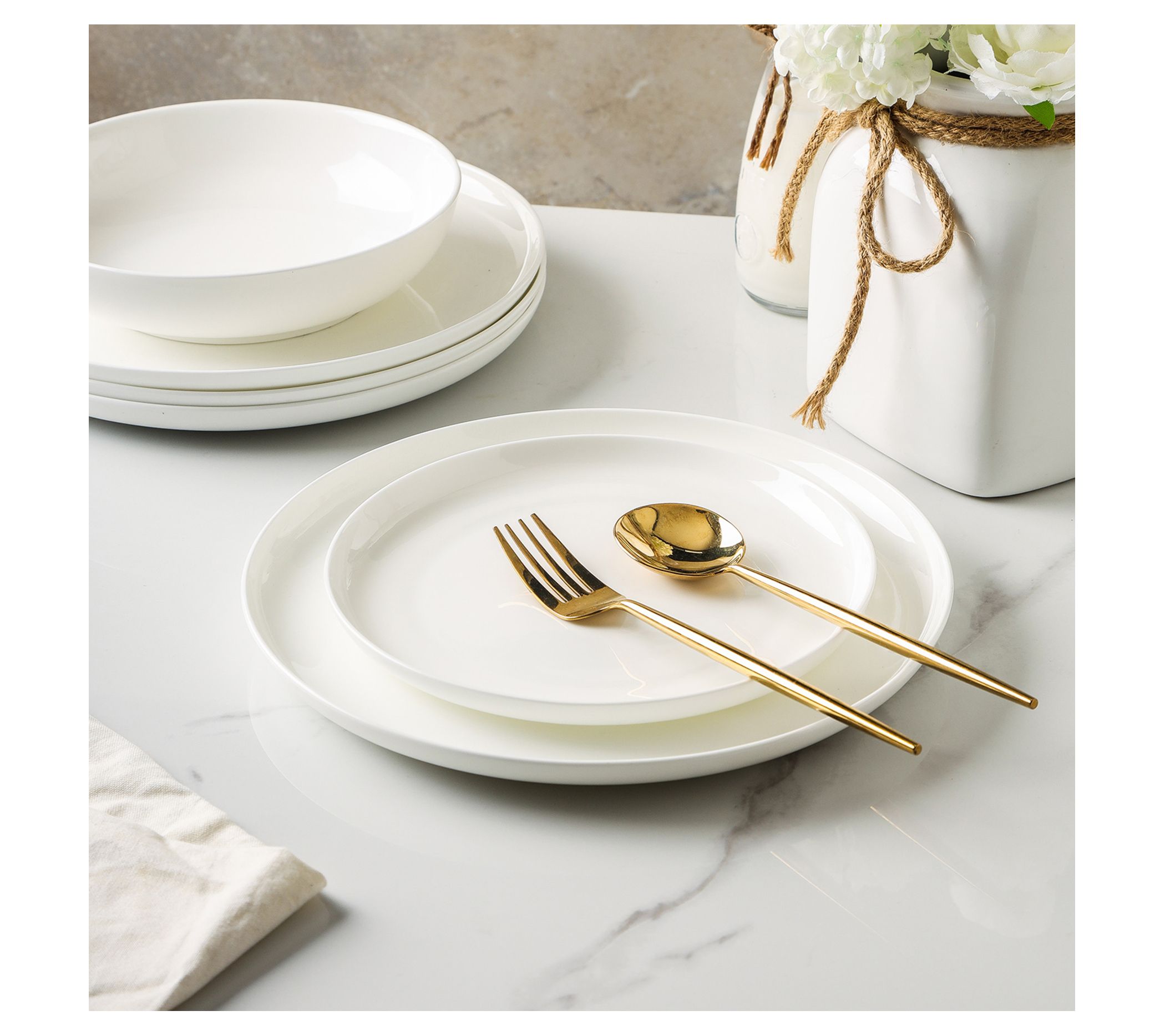 • Includes four dinner plates, four salad plates, and four bowls