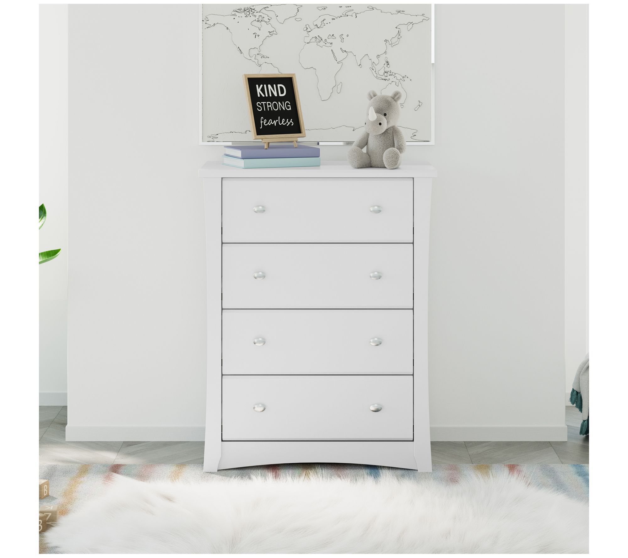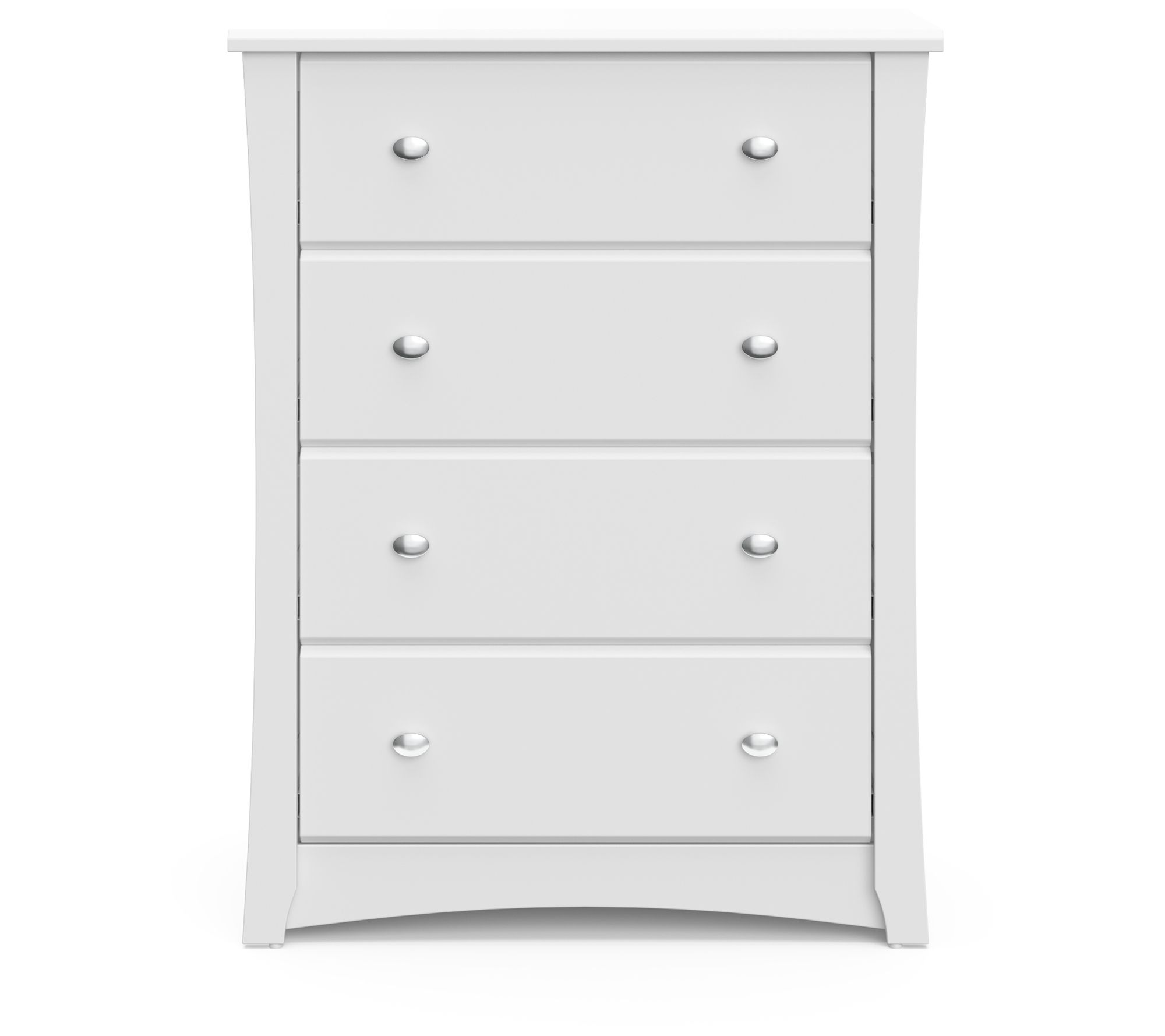 Carefully crafted and built to last, the Crescent chest is a stylish storage solution for a nursery or child's bedroom. Four spacious drawers feature an easy-glide design and safety stops. From Storkcraft.