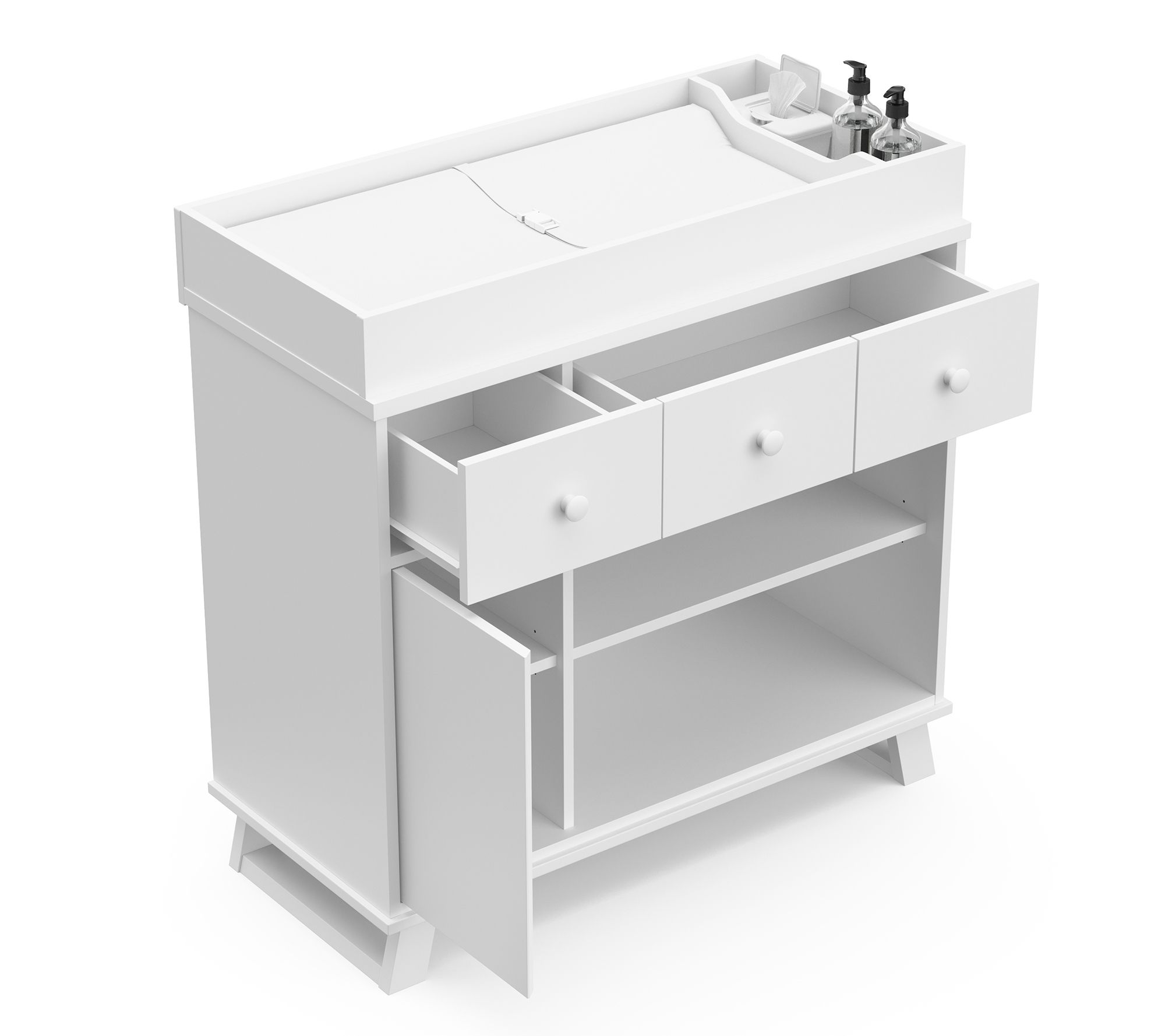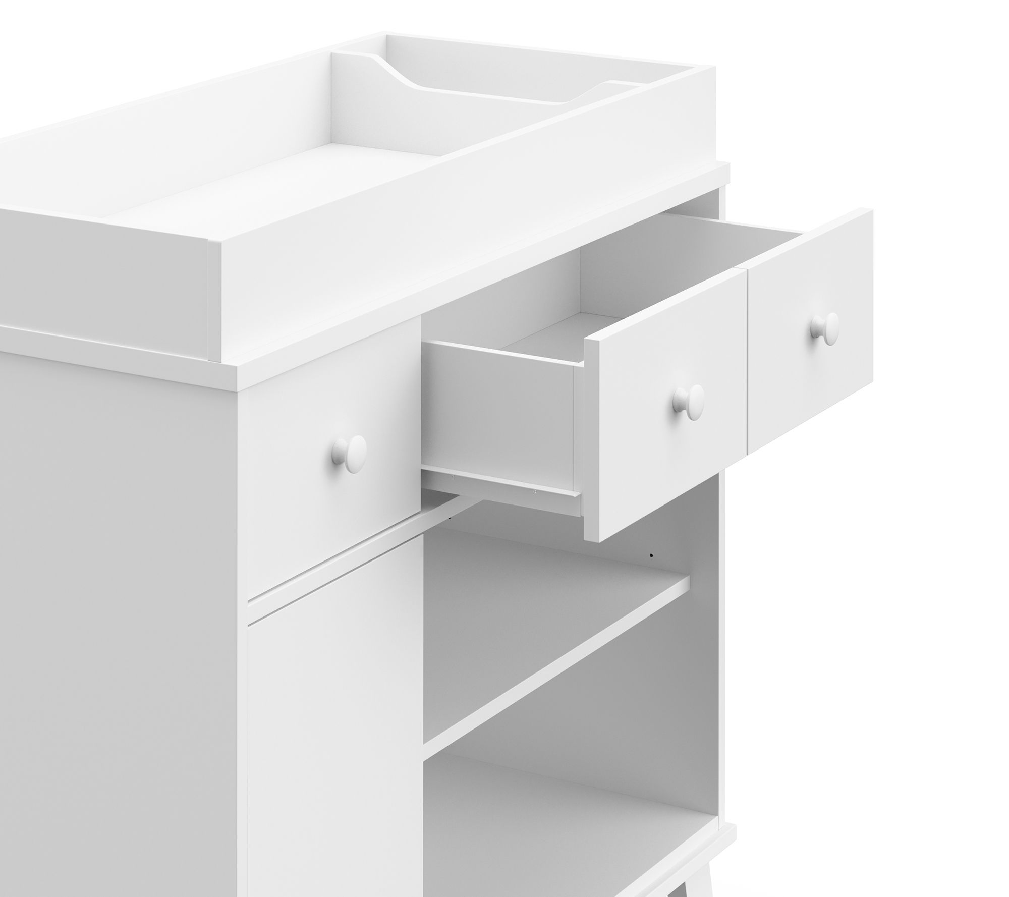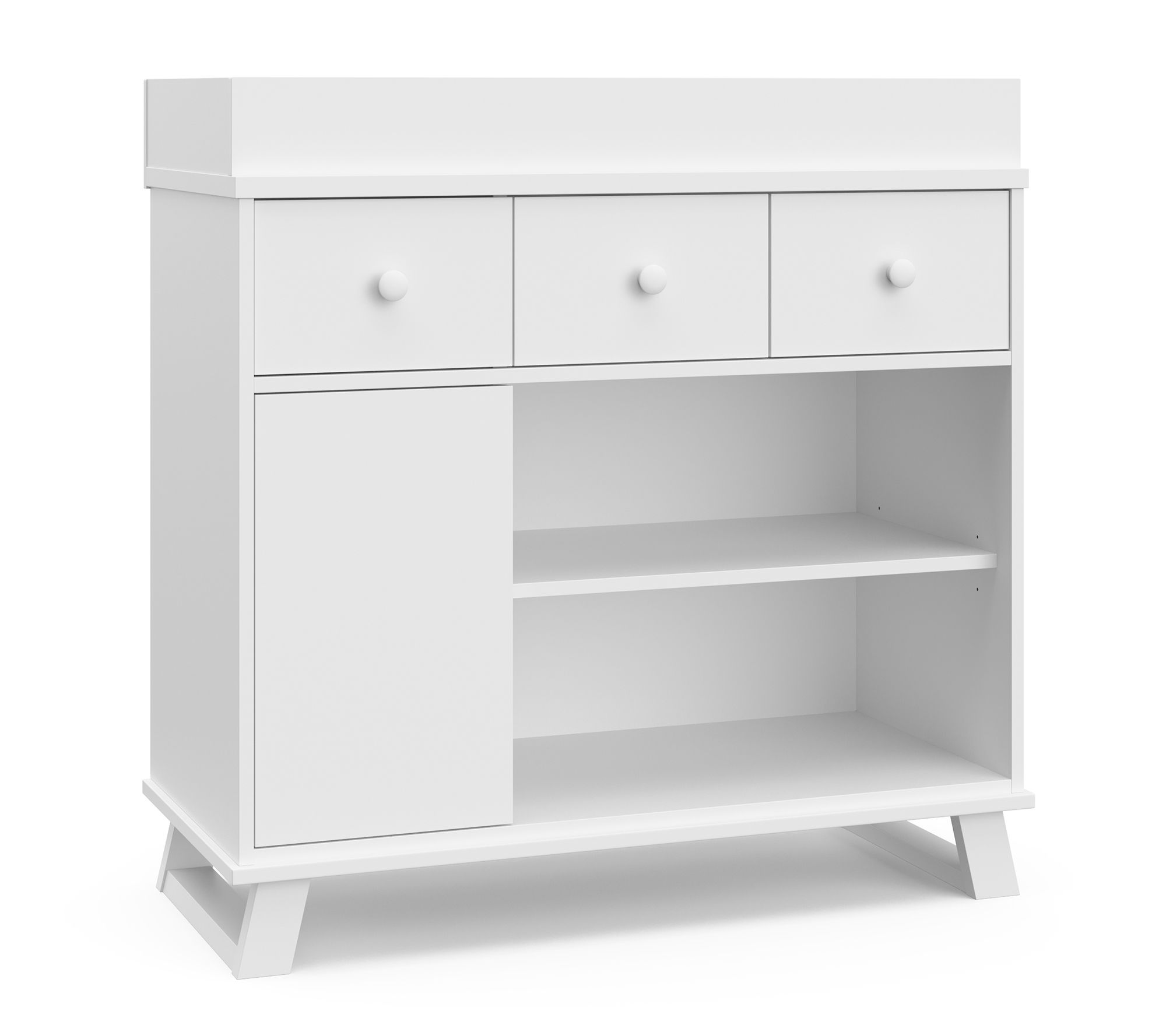 Offering clean lines and contemporary style, this changing table dresser is the perfect way to enhance the look of any nursery. From Storkcraft.