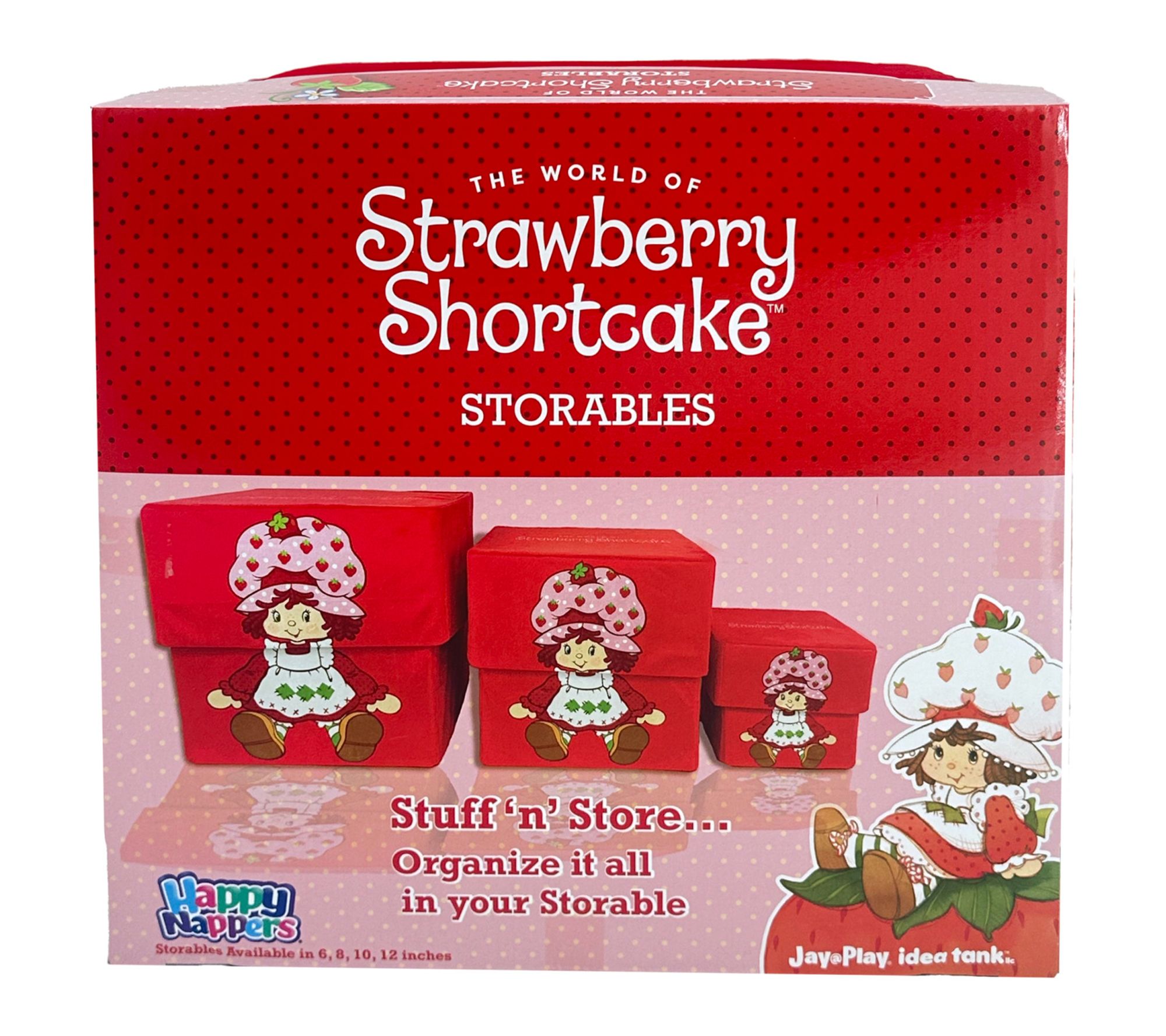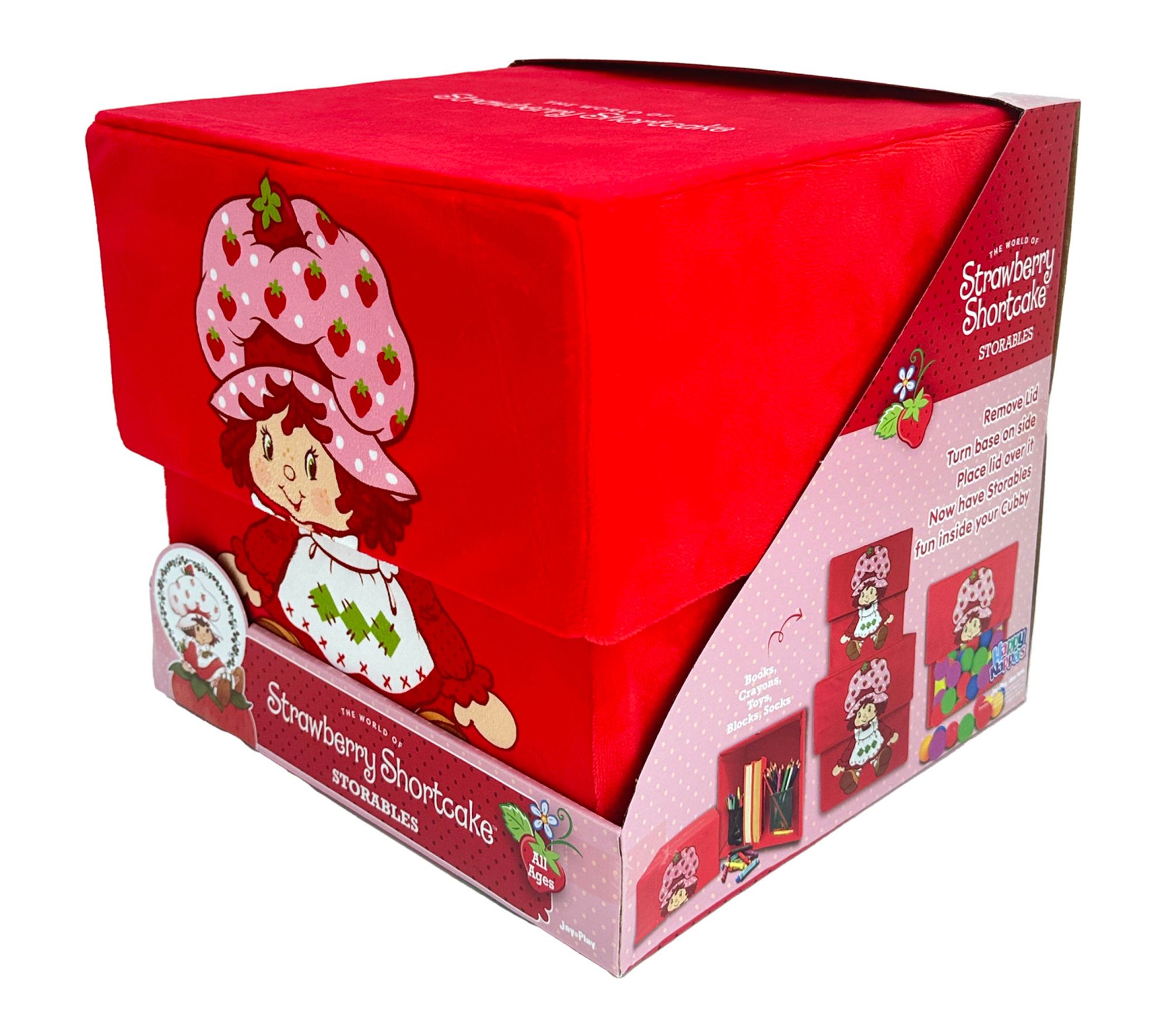 Brighten your child's play space and keep clutter in check with this Strawberry Shortcake themed toy storage bin. The adaptable design lets you easily switch from a classic box with a lid for hidden toy storage to an open cubby, perfect for showcasing favorite books and treasures. From Jay at Play.