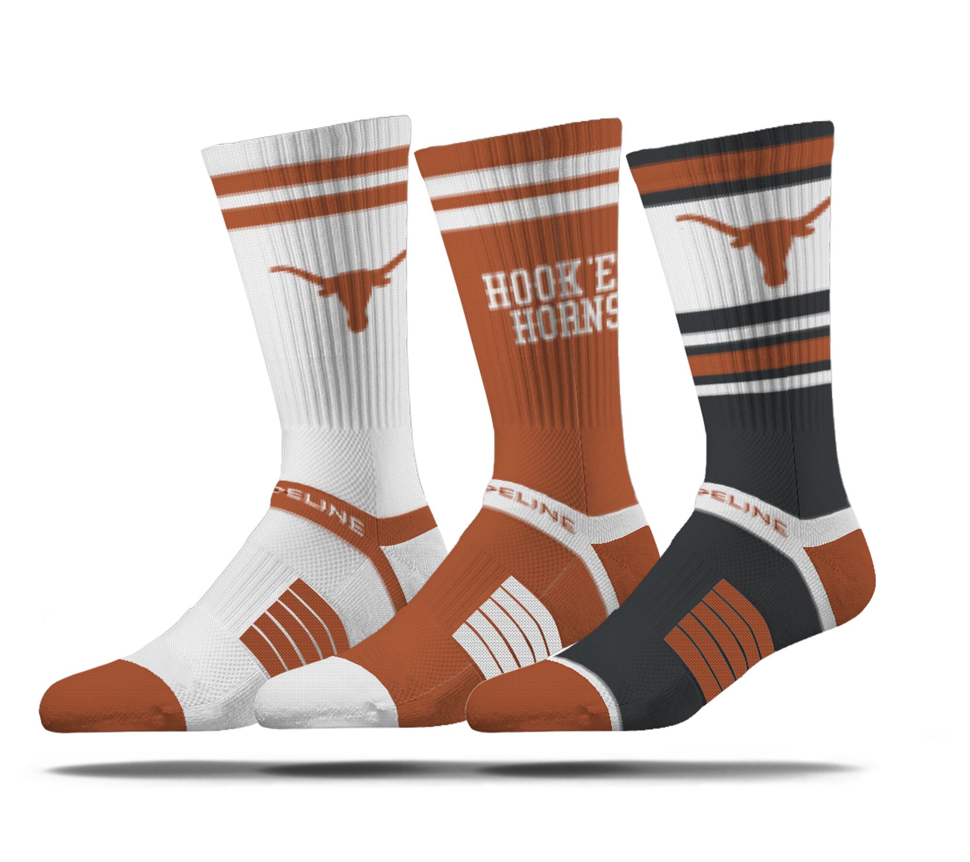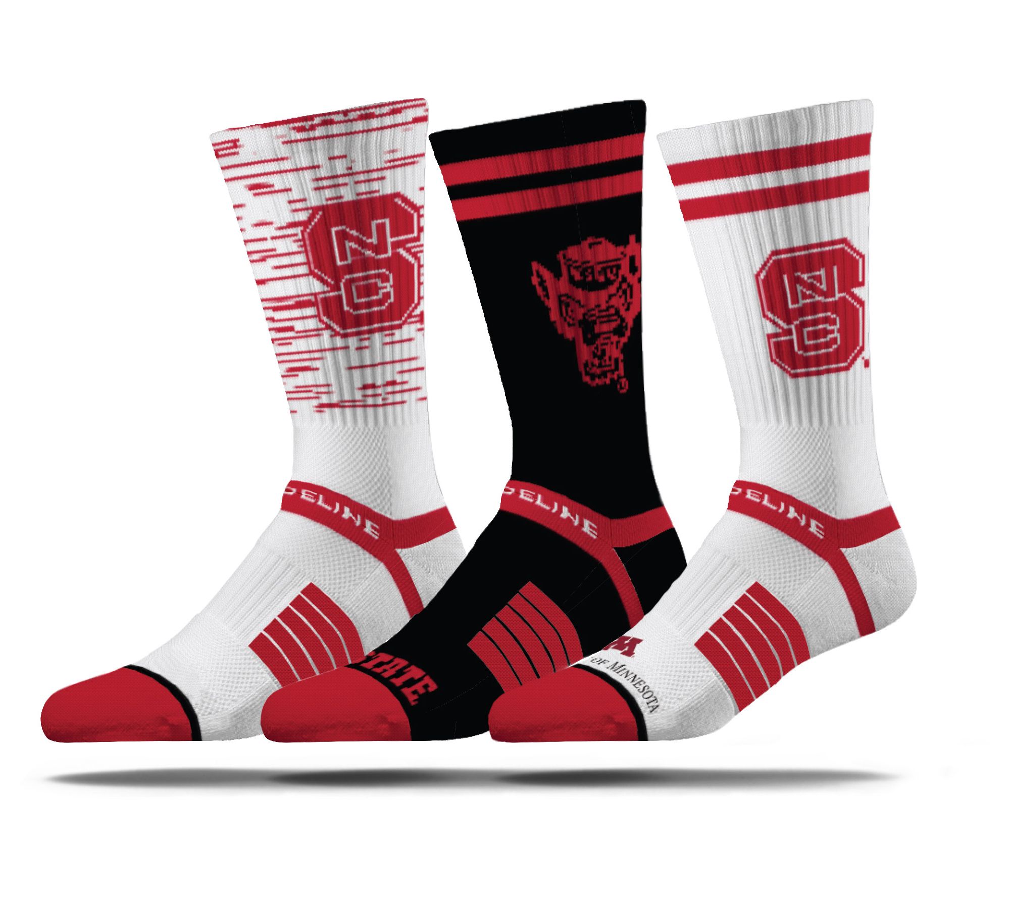 Celebrate your favorite college players as you wrap feet in cushioned comfort with this three-pack of men's NCAA socks, each pair featuring school colors and a bold team logo. From Strideline.