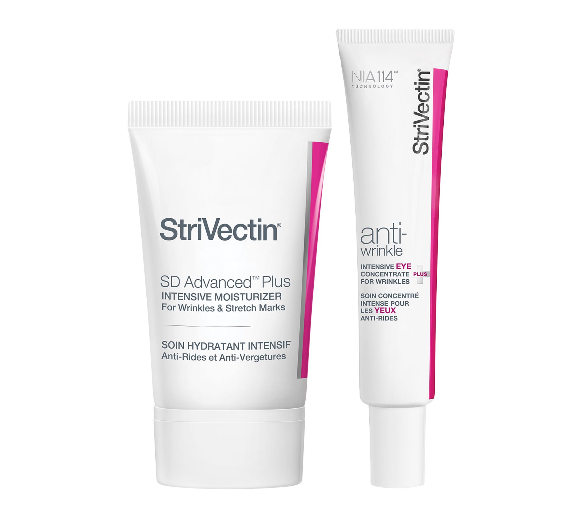 Try this StriVectin duo to help temporarily smooth the look of skin -- even on the body. Intensive Eye Concentrate for Wrinkles PLUS helps target lines and wrinkles around the eyes, including crow's feet, and it's formulated with horse chestnut flower extract. SD Advanced Plus Moisturizer helps improve the look of fine lines and wrinkles, and it's formulated with hyaluronic acid for soft-looking, skin.