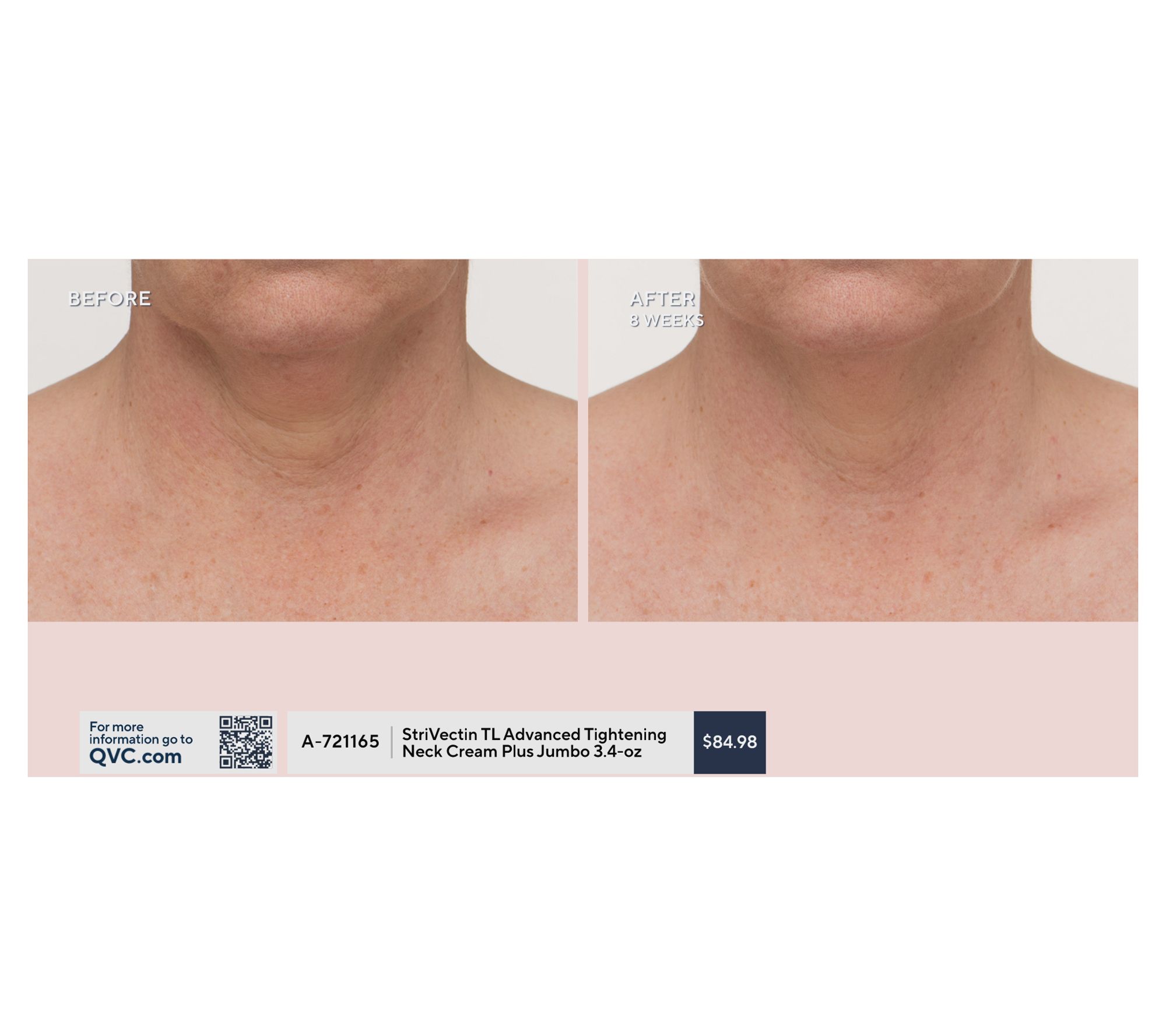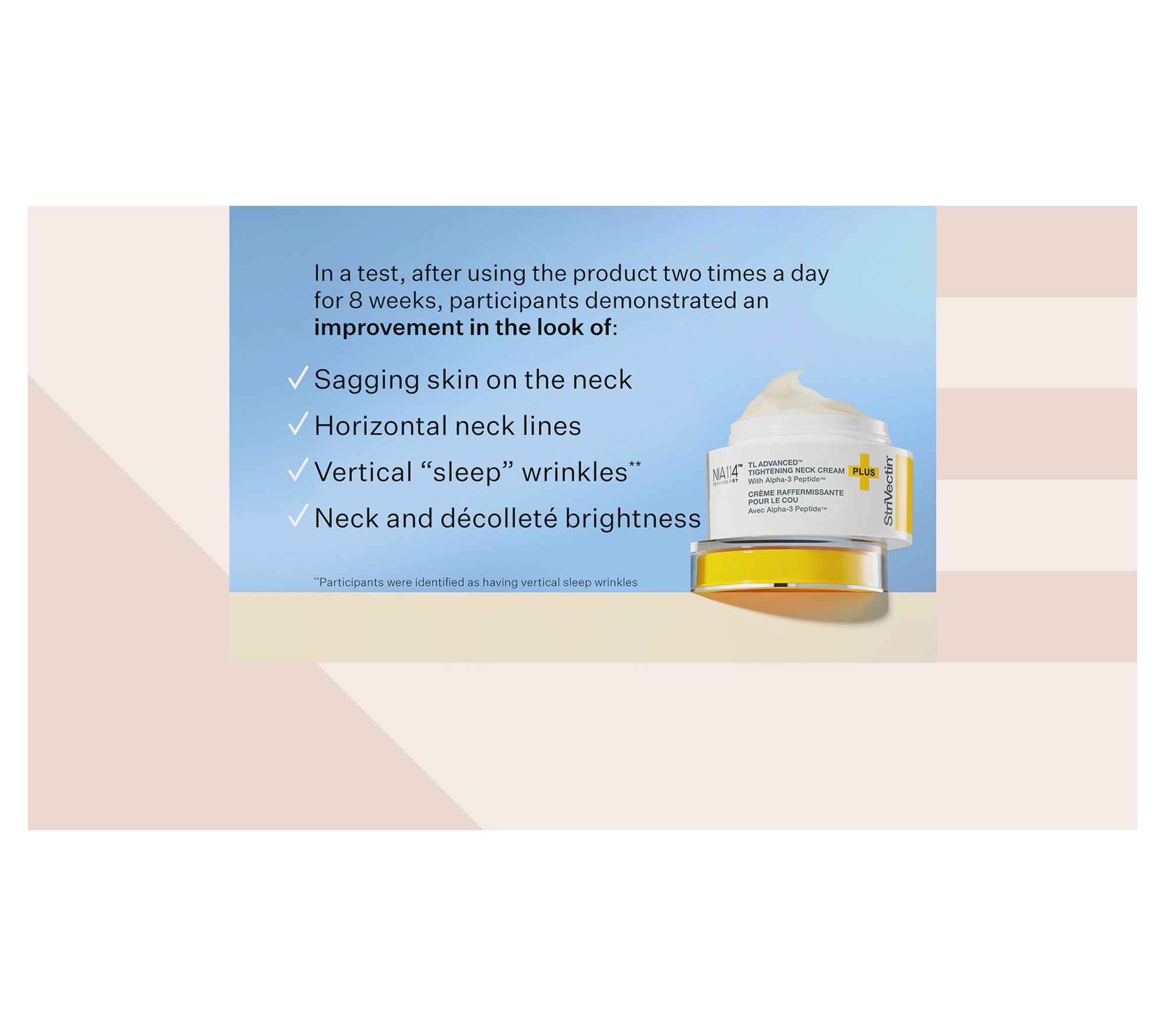 Sleep wrinkles -- it's a thing! Take a science-backed approach and care for the delicate skin beyond your chin with StriVectin's TL Advanced Tightening Neck Cream PLUS. Powered by a proprietary AI-generated Alpha 3 Peptide along with NIA-114 technology, it's everything you need for the appearance of a youthful-looking neck and decollete in one cream. From jawline to bra line, this do-it-all formula helps improve the look of skin on the neck and the decollete.