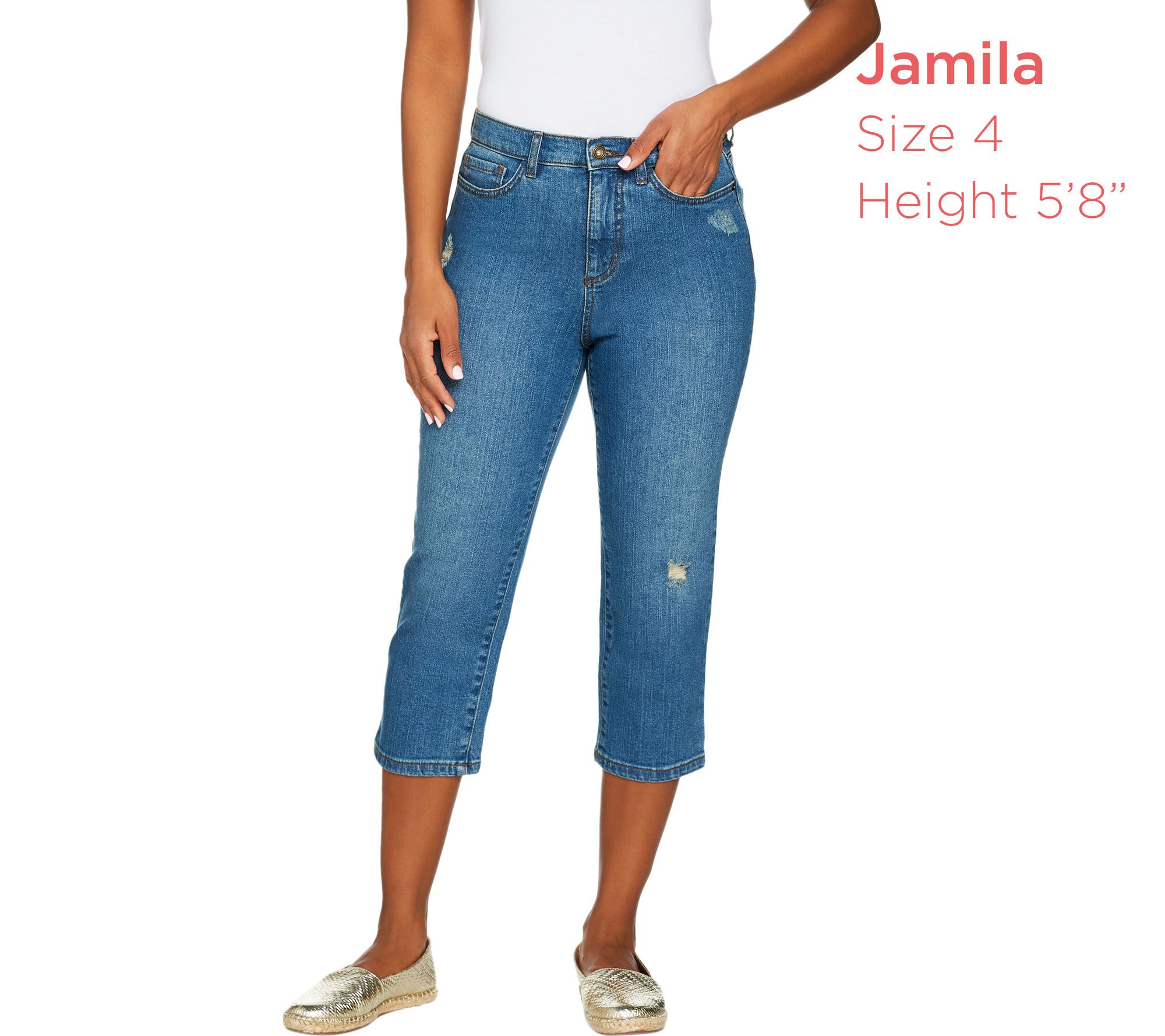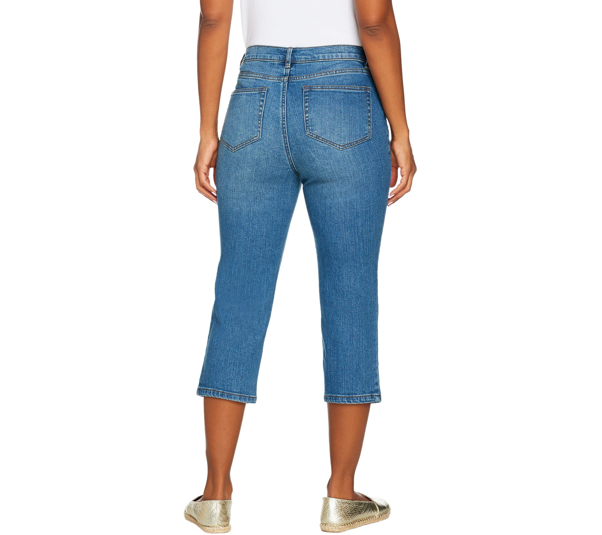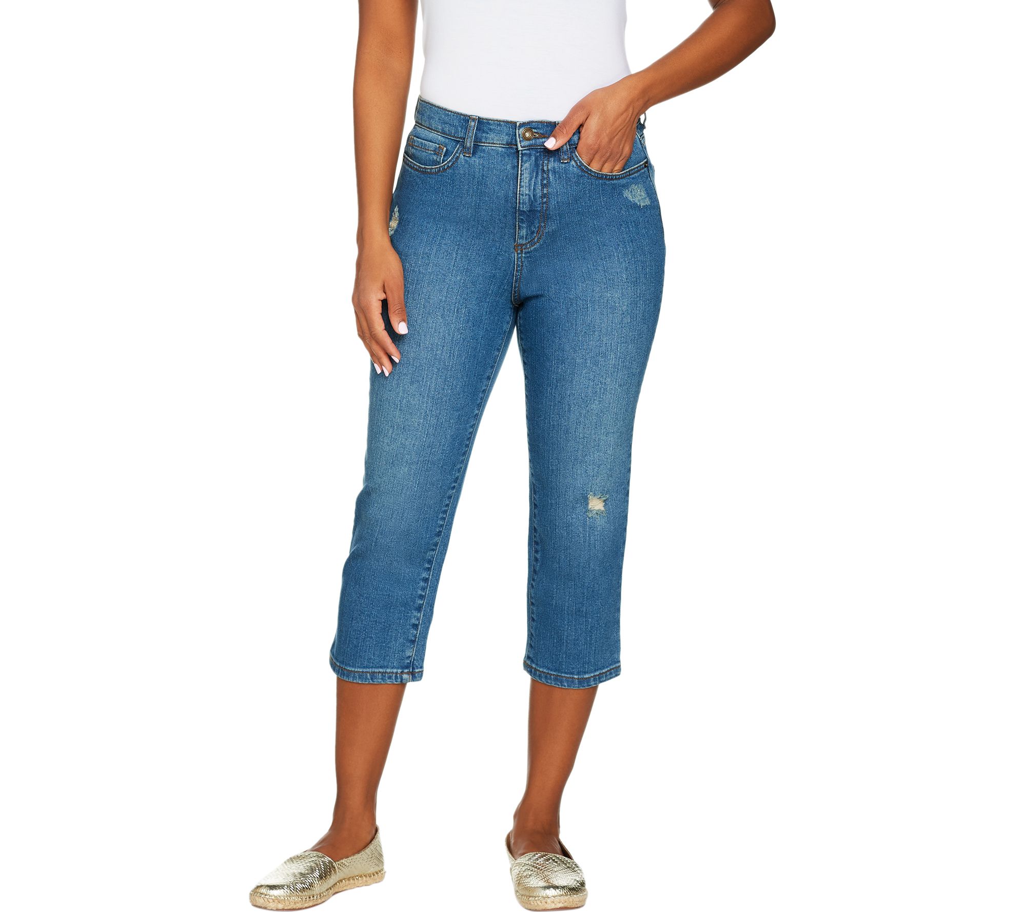 A summer staple, these slightly distressed capri pants have a little stretch to move with you through the warm-weather months. From Studio by Denim & Co.(R) Fashions.
