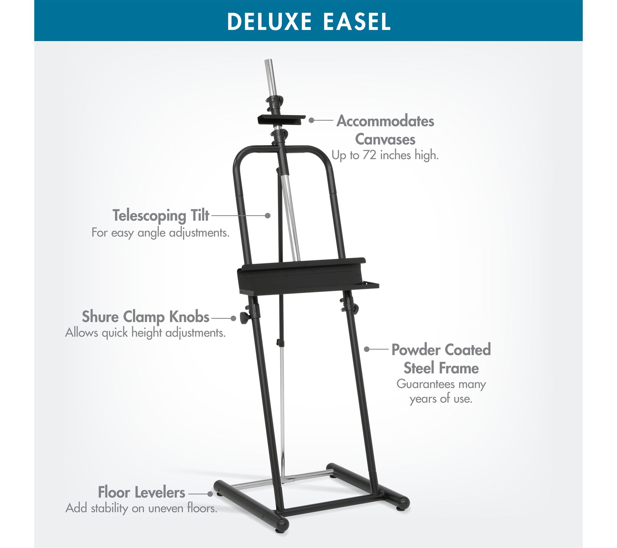 • Accommodates canvases up to 72" tall and 1.5" thick