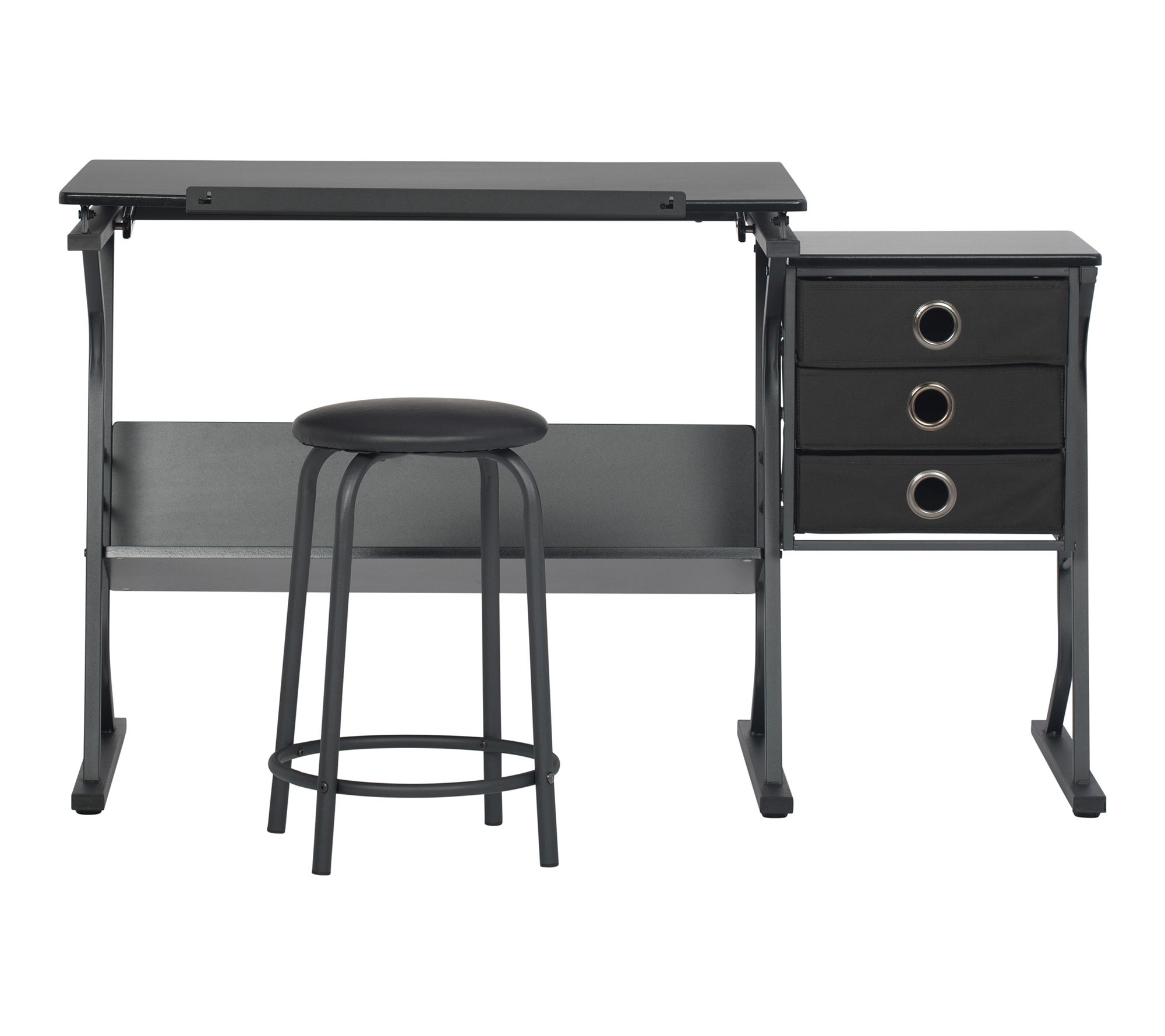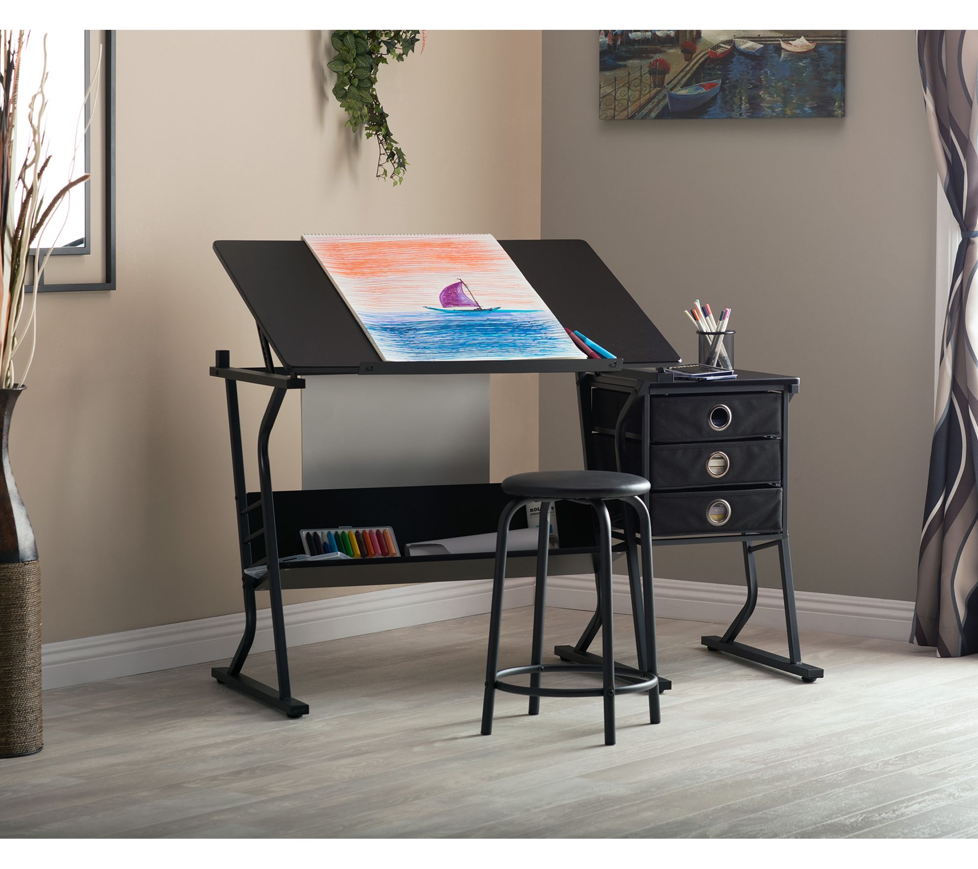 Get inspired to create in comfort with this versatile craft table, designed to keep essentials at your fingertips while offering an adjustable work surface for drawing, crafting, or organizing. Storage drawers hold all your supplies, while the sliding pencil ledge and sturdy construction make every project easier and more enjoyable. From Studio Designs.