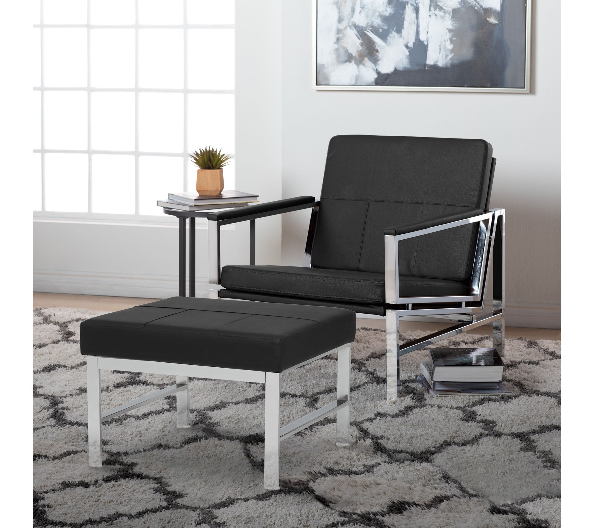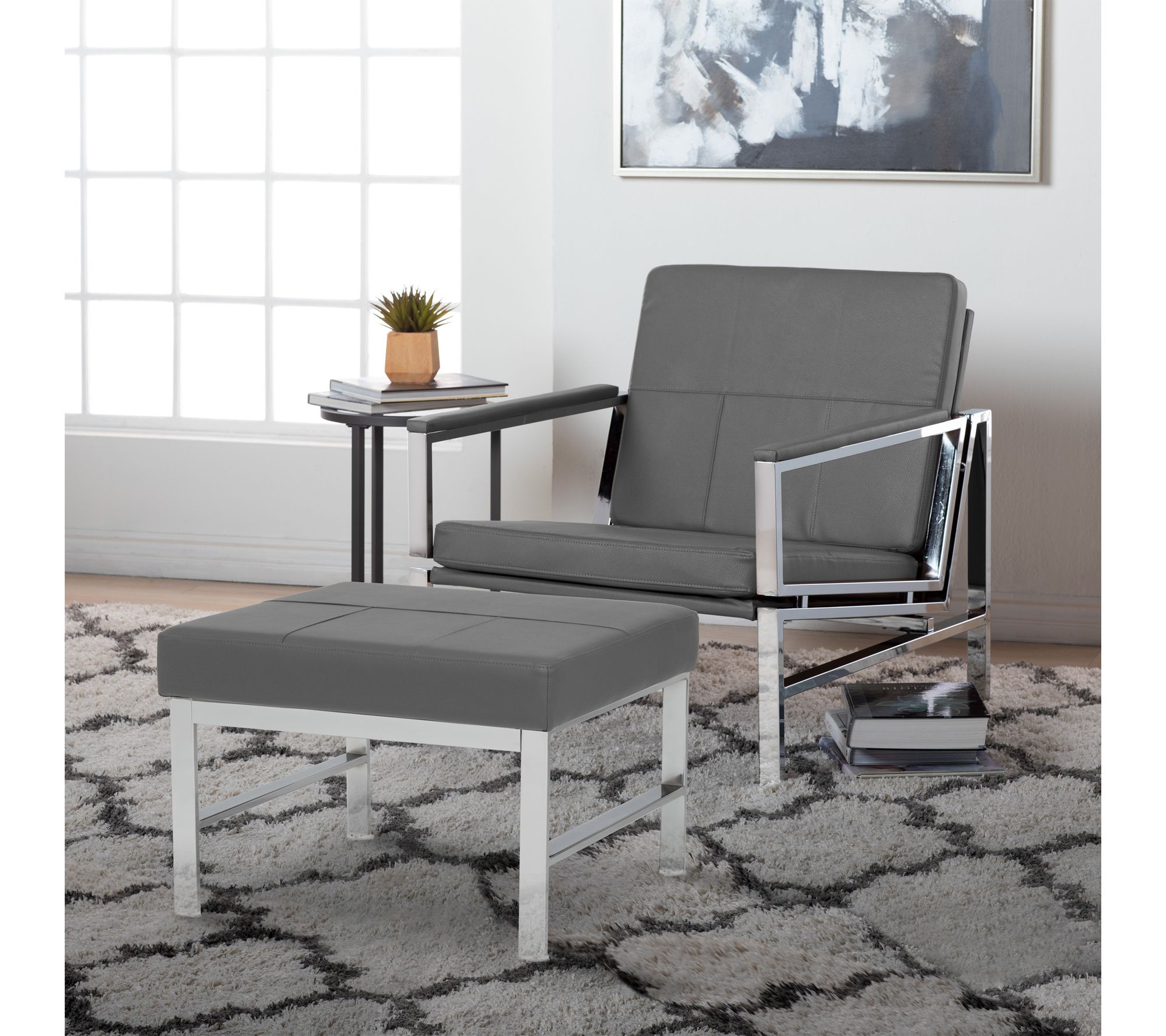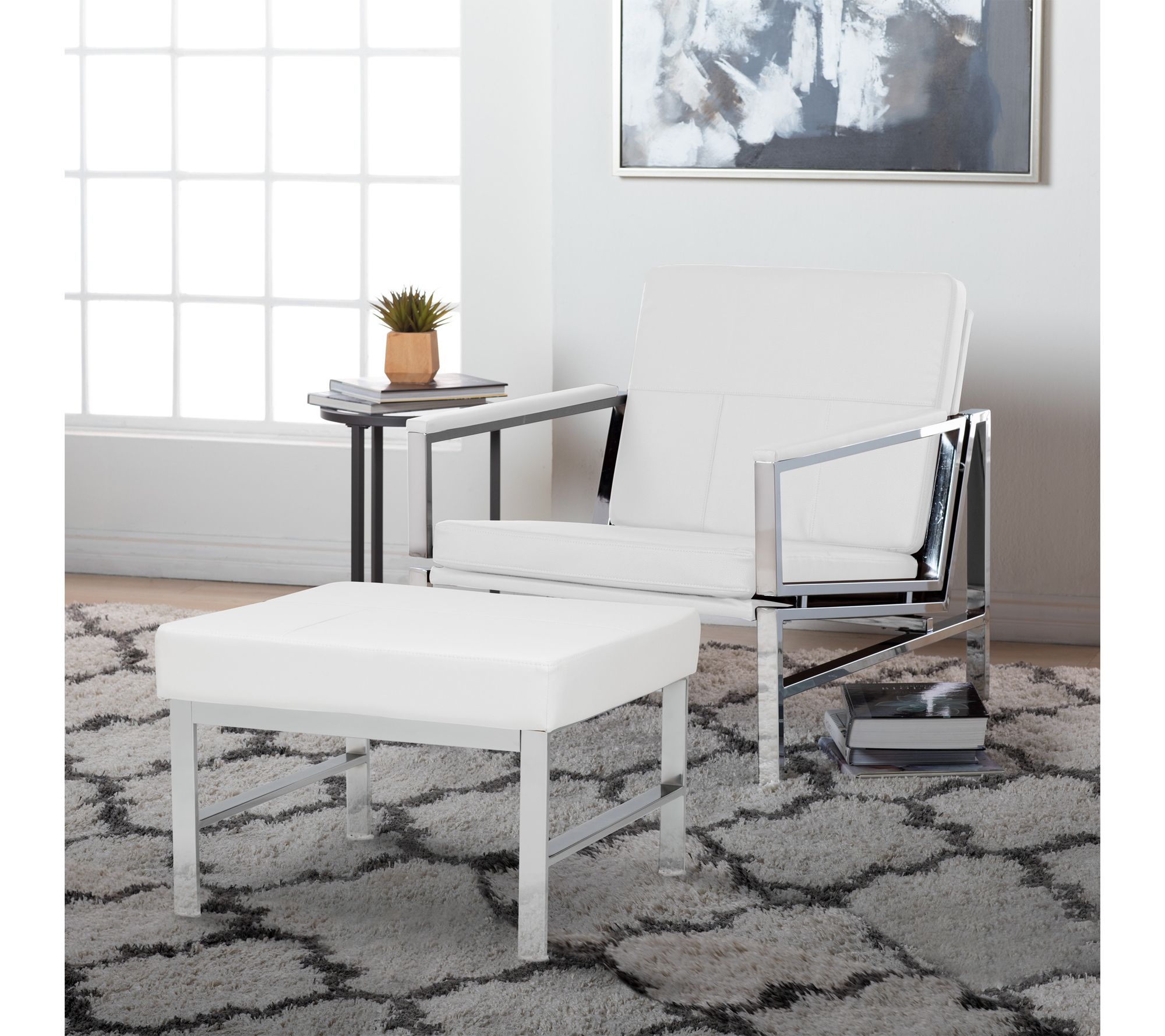 Mid-century charm meets modern flair in this ottoman, bringing plush comfort and a striking chrome base to your living space. Enjoy it as an inviting extra seat or a stylish spot to rest your feet -- its versatile design complements offices, living rooms, or lounge areas alike. From Studio Designs Home.