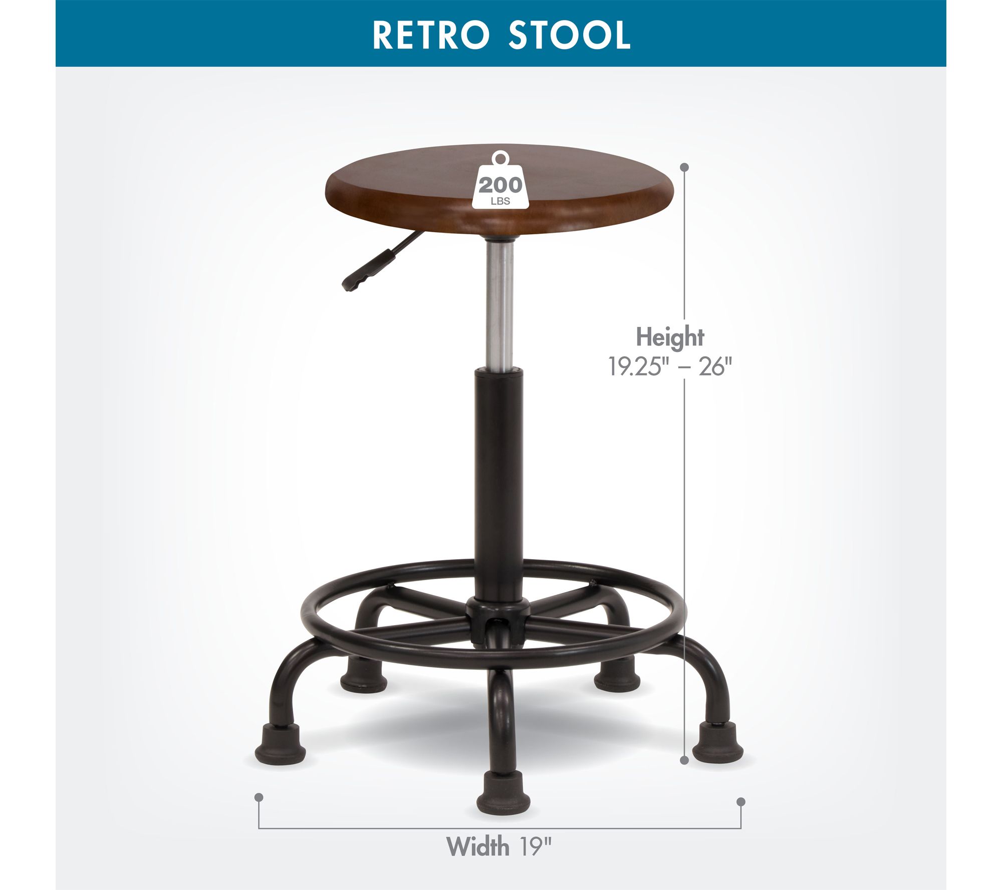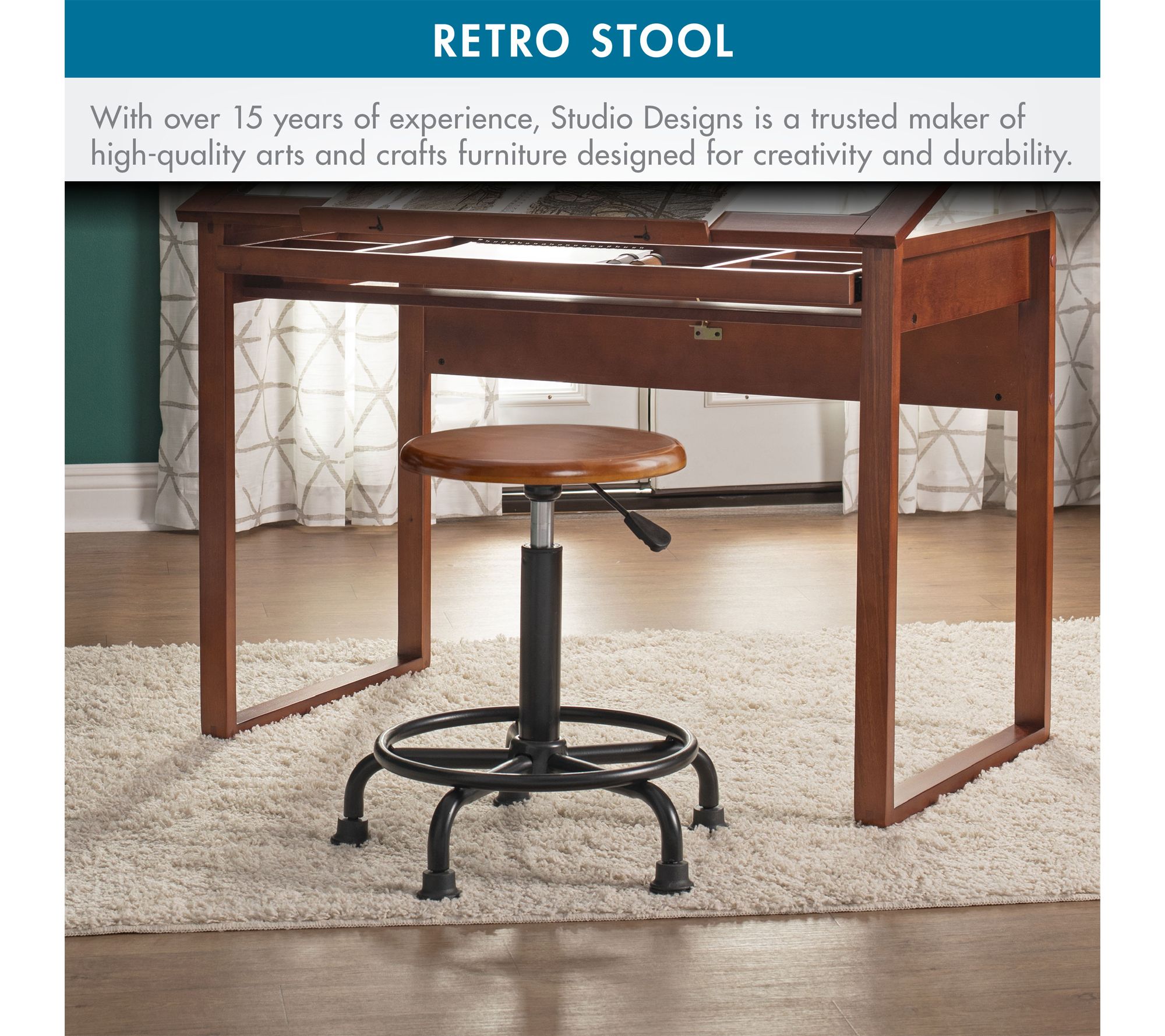 Studio Designs Retro Wood Metal Height Adjustable Stool
