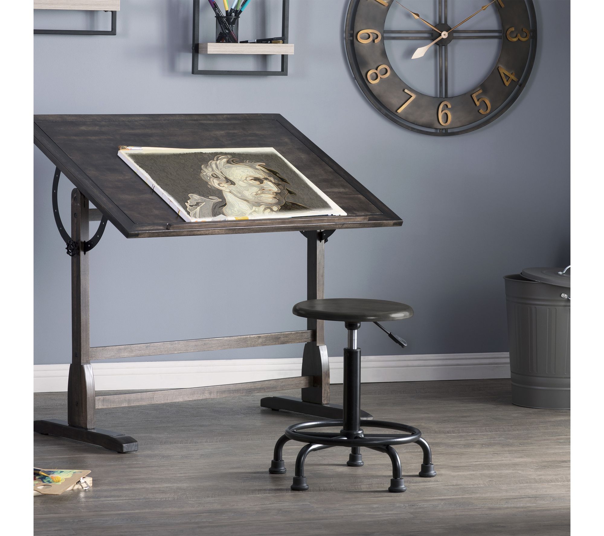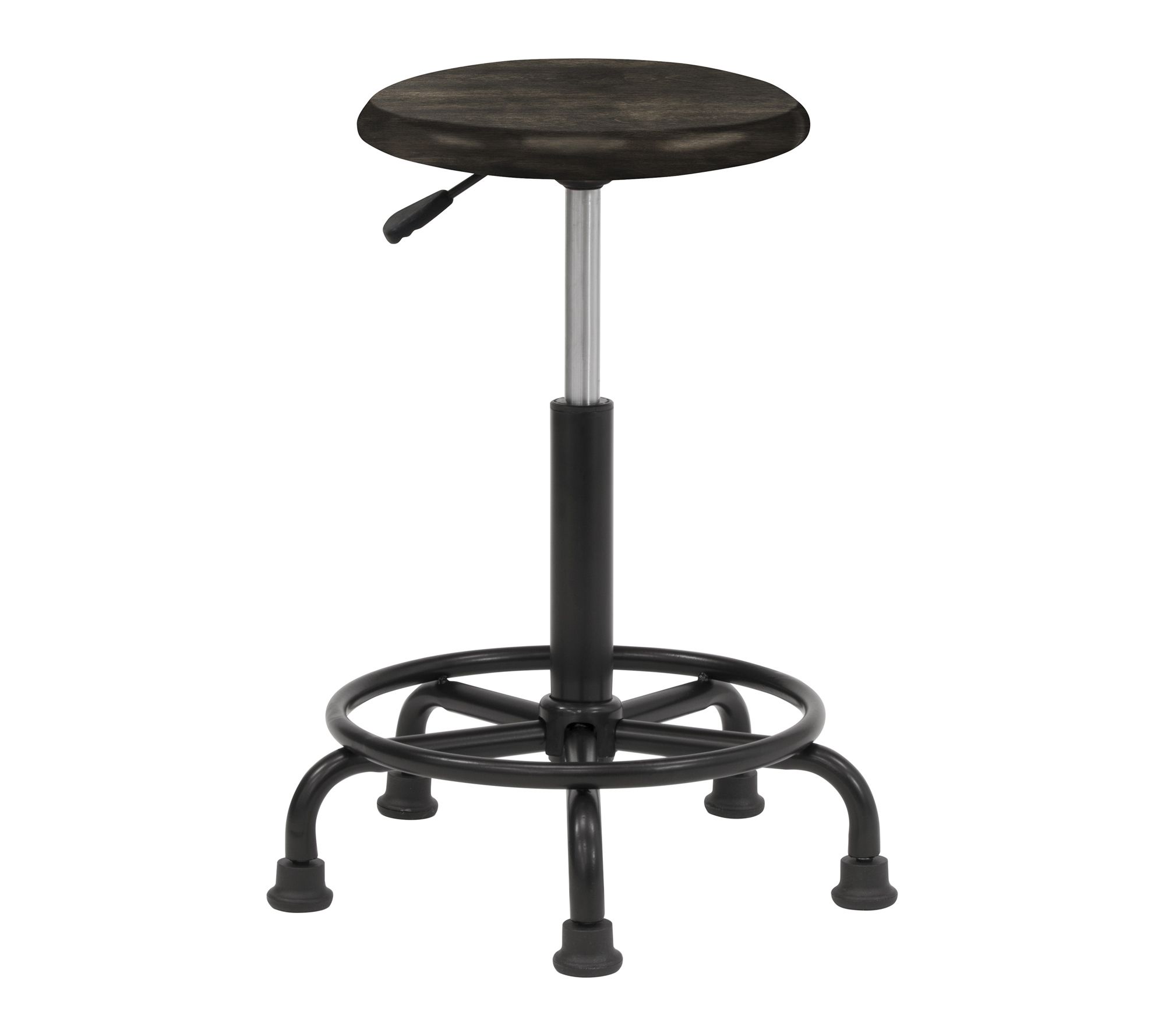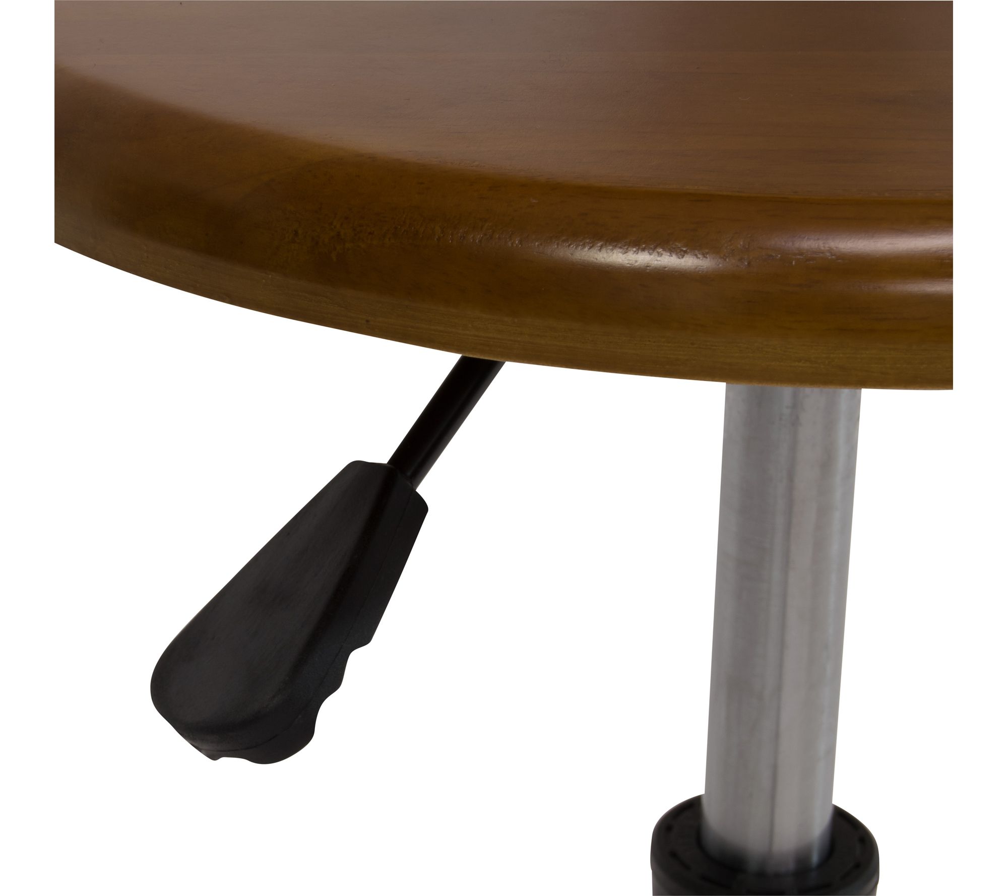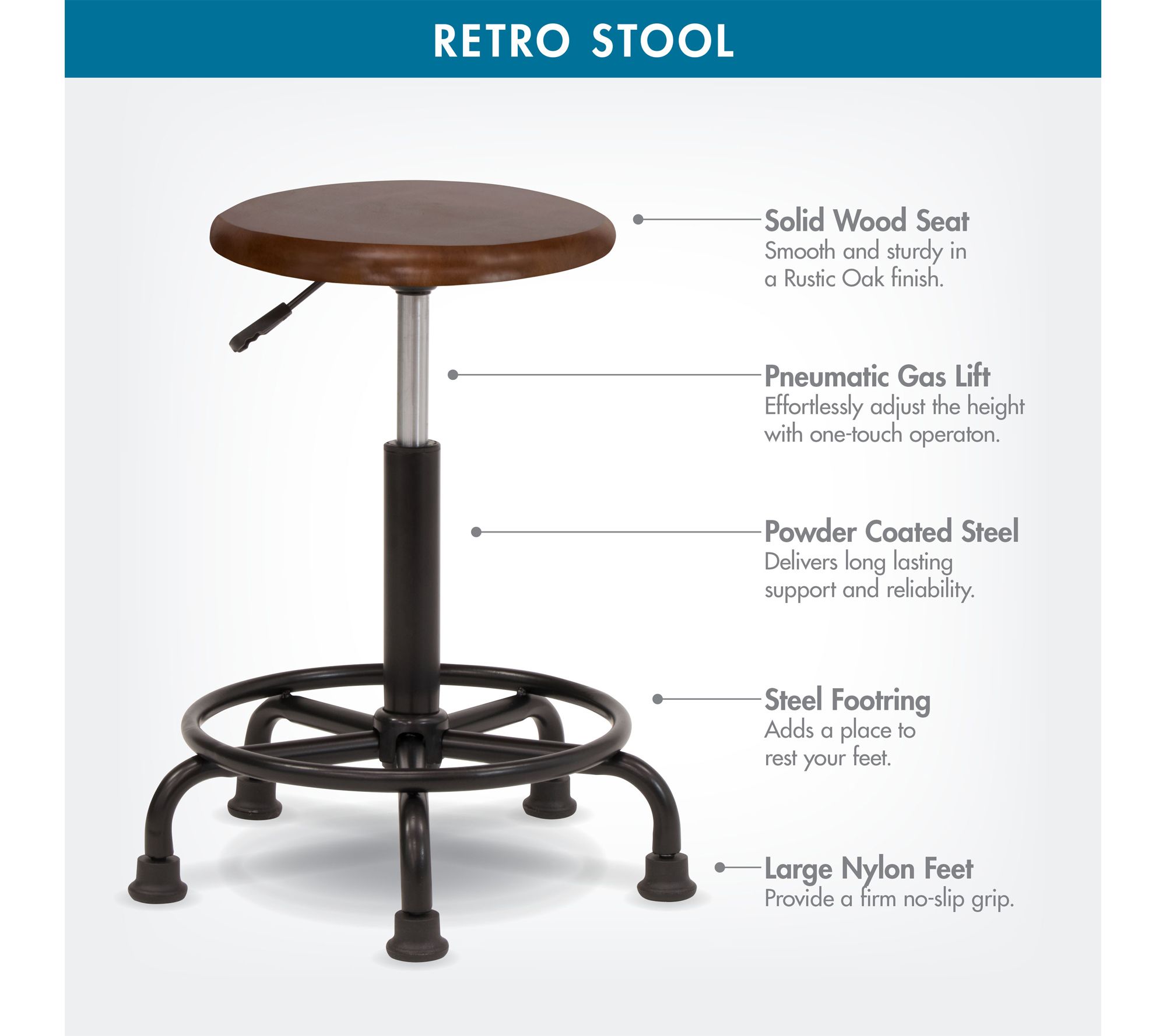 Create the ideal workspace setup or bring comfortable seating to your kitchen counter with this retro-inspired adjustable stool. Swivel easily between tasks on the round wood seat, and raise or lower it to fit just right while you work or unwind. From Studio Designs.