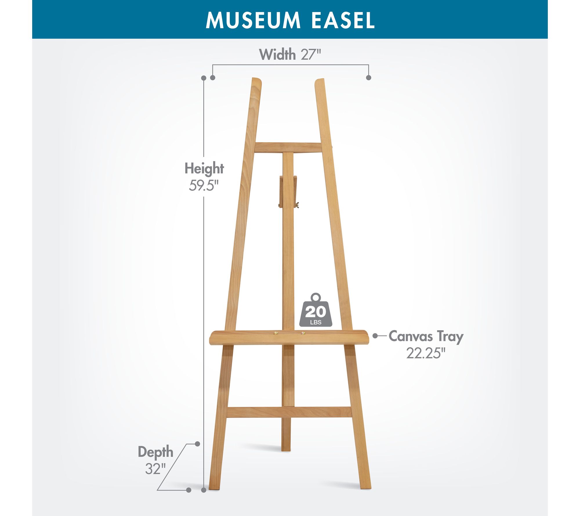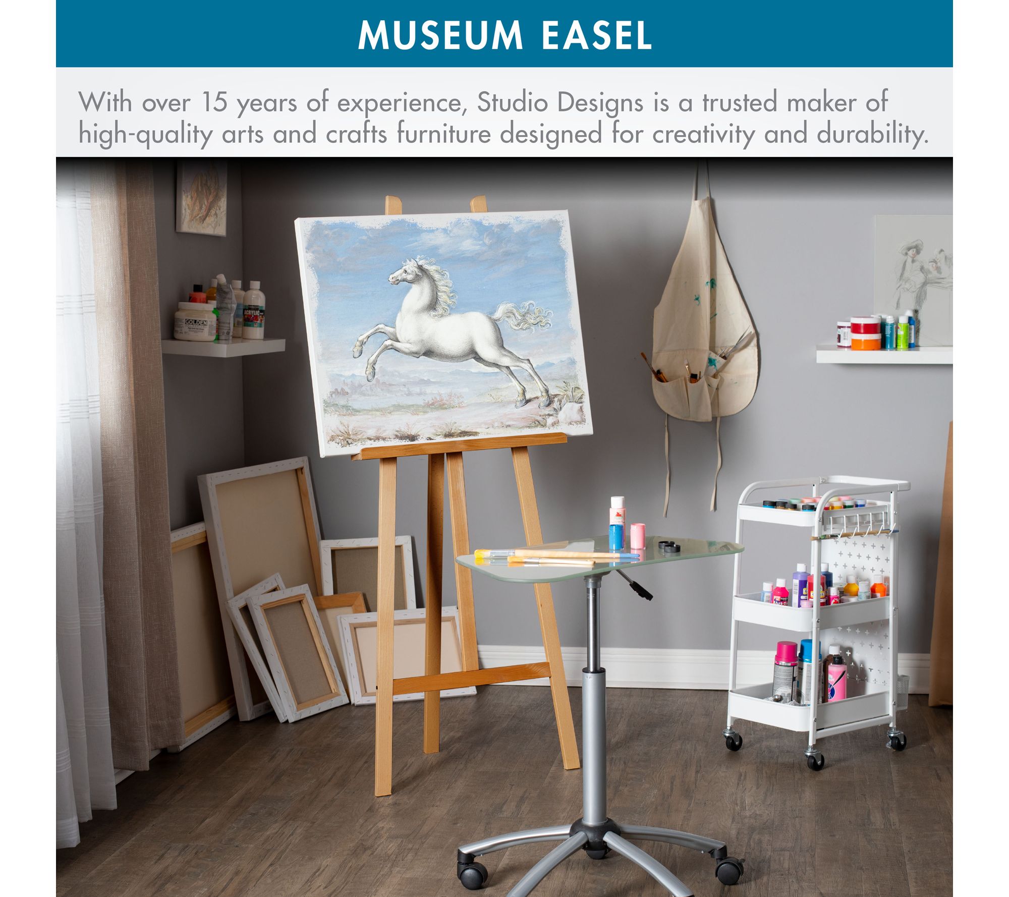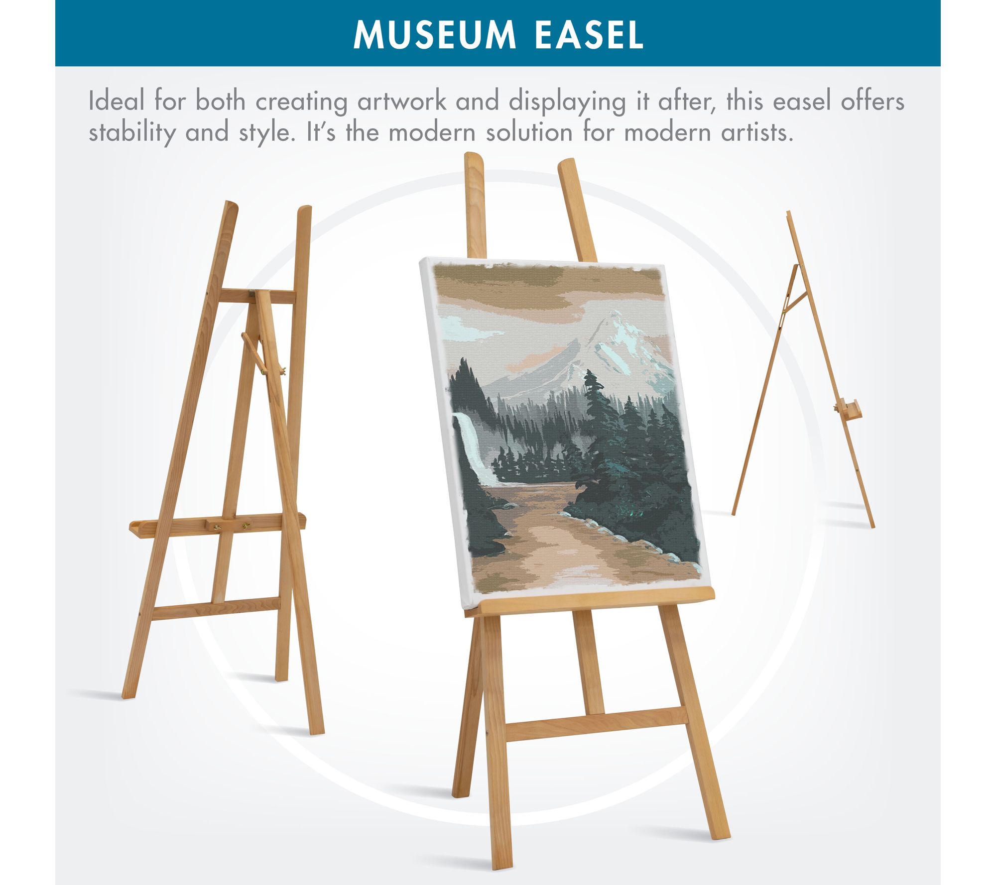 Elevate your creative space with this Museum Display Art Lyre Easel, designed to secure your artwork while you paint and showcase it when complete. The smooth sanded Birch hardwood finish adds a refined touch, and its adjustable angle allows for versatile use. The easel conveniently folds flat for easy storage. From Studio Designs.
