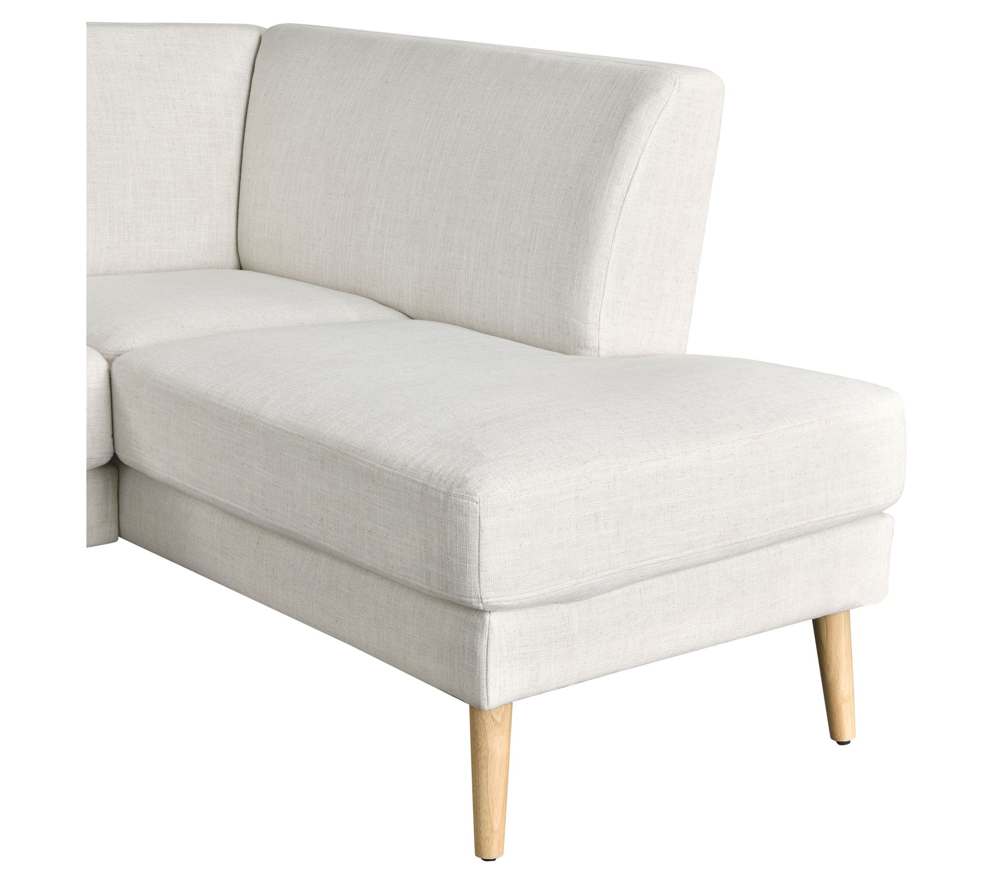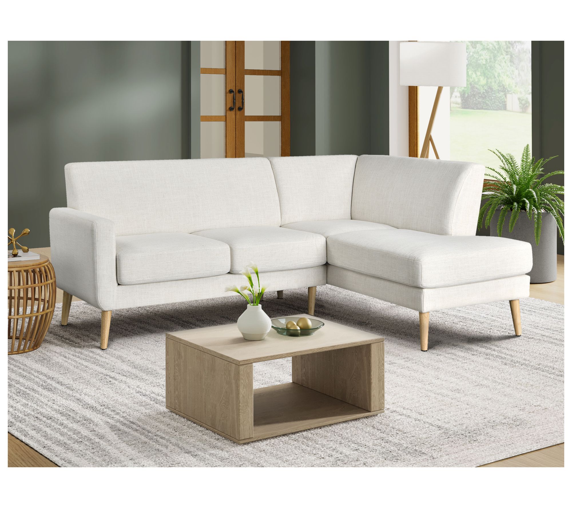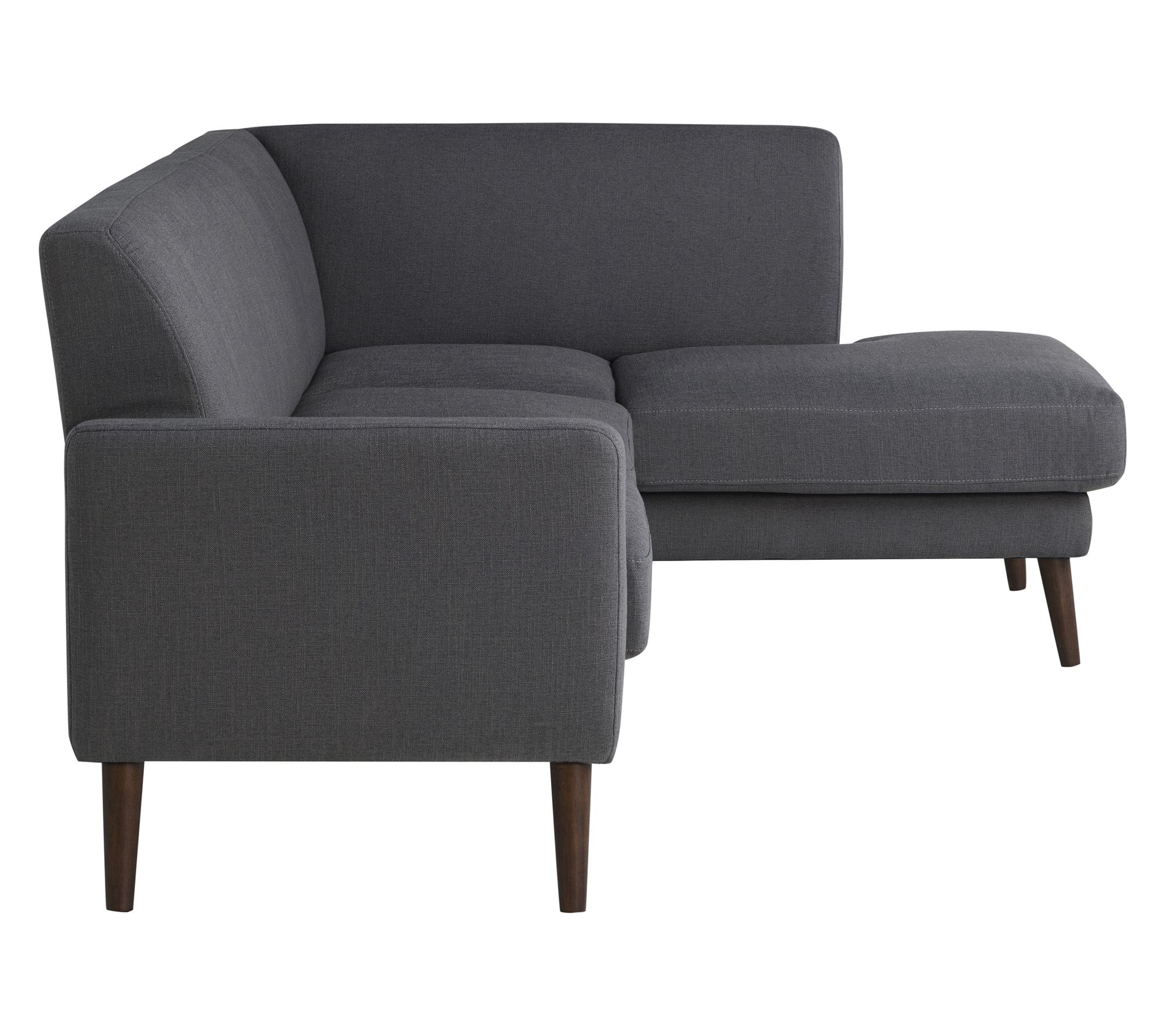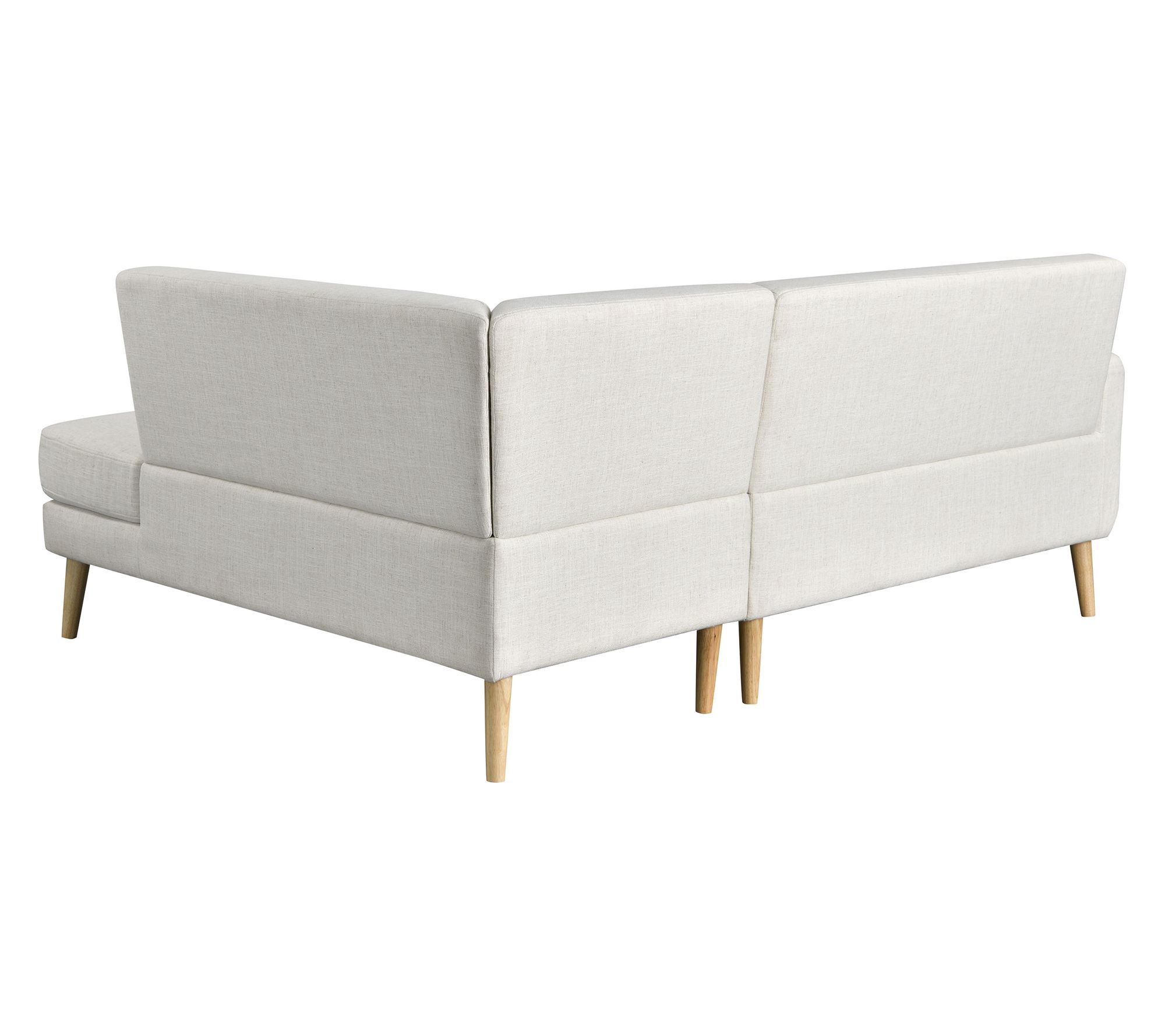 Lazy afternoons or lively gatherings -- this sectional is ready for it all. Sturdy support from a kiln-dried hardwood frame and rubber wood legs keeps your seating solid, while high-density foam and pocket coils promise hours of comfort. Removable cushions, soft fabric, and a streamlined look make it easy to keep your living room both stylish and inviting. From Studio Living.