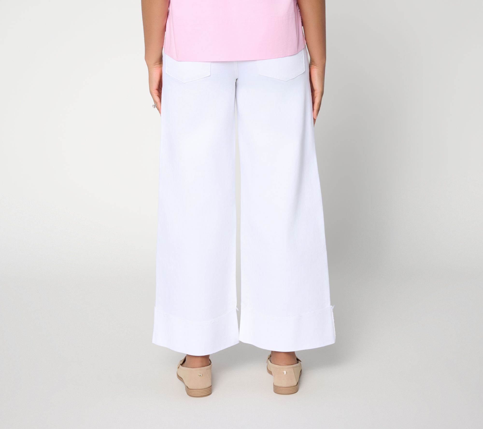 Love Amy Stran's chic, laid-back style? (We do!) Permission to imitate with her super-cute cuffed ankle jeans. Freshen up weekday looks or add a playful twist to weekend style with wide-leg jeans that offer a contoured waistband (for that no-gap fit) and a raw edge that blends a modern vibe with classic cotton comfort. (Thanks, Amy!) From Studio Park™ x Amy Stran.