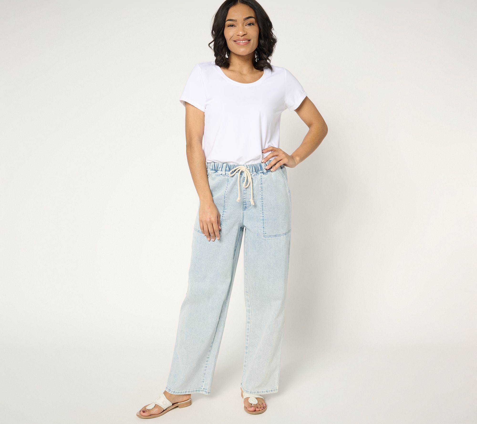 Have your fashion moment -- and your comfort, too -- in these drawcord jeans. Crafted with a fit that's just relaxed enough, an endlessly versatile straight leg, and Amy's signature stylish vibe, they're here for travel to chic destinations, casual Fridays, and everything in between. From Studio ParkTM x Amy Stran.