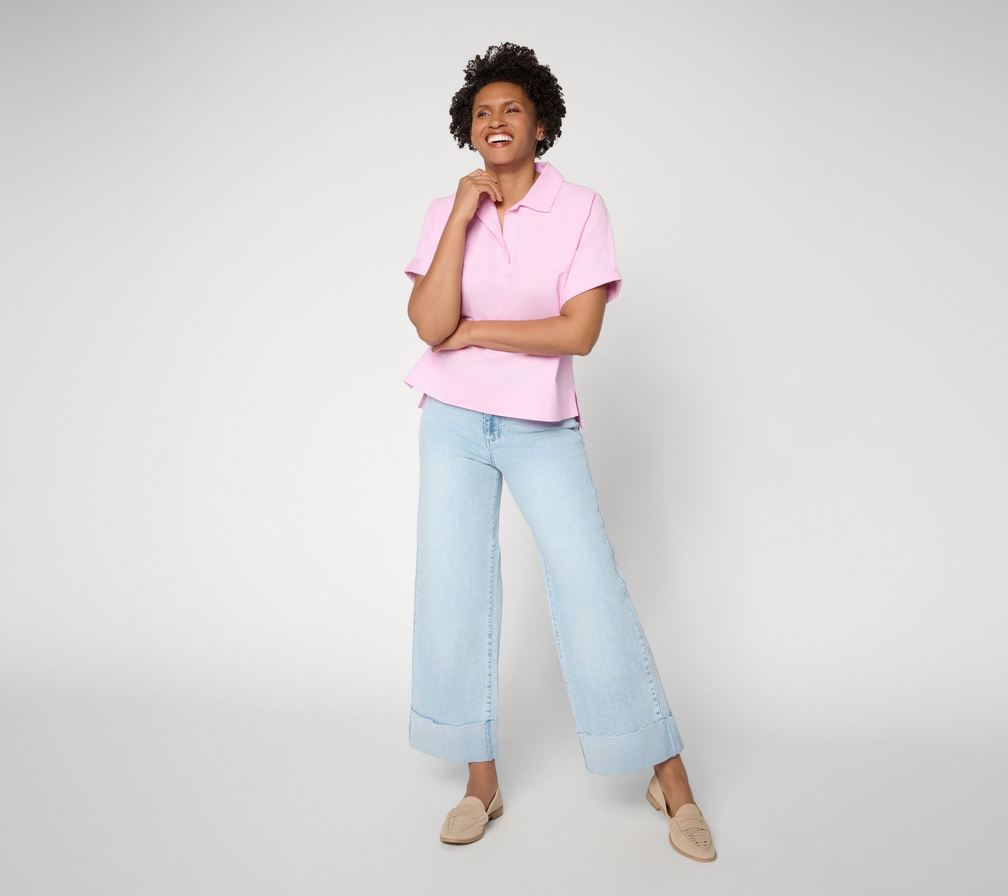 Love Amy Stran's chic, laid-back style? (We do!) Permission to imitate with her super-cute cuffed ankle jeans. Freshen up weekday looks or add a playful twist to weekend style with wide-leg jeans that offer a contoured waistband (for that no-gap fit) and a raw edge that blends a modern vibe with classic cotton comfort. (Thanks, Amy!) From Studio Park™ x Amy Stran.