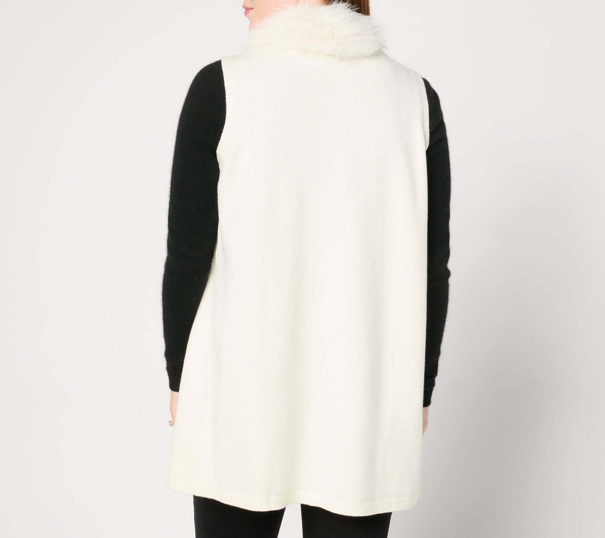 Studio Park X Jane Treacy Draped Sweater Vest with Faux Fur Trim