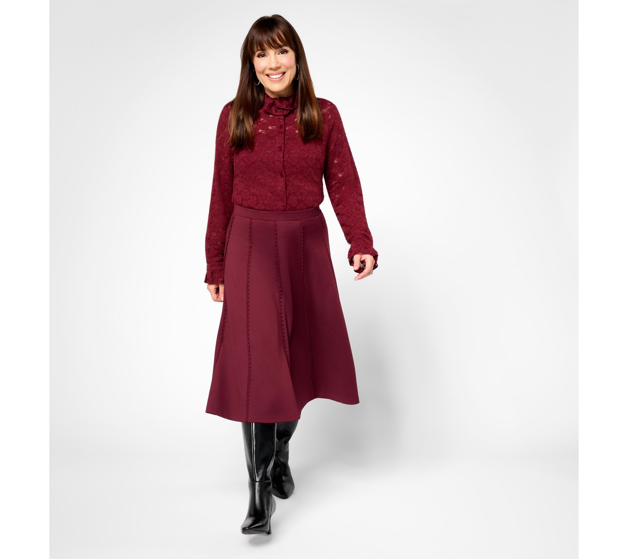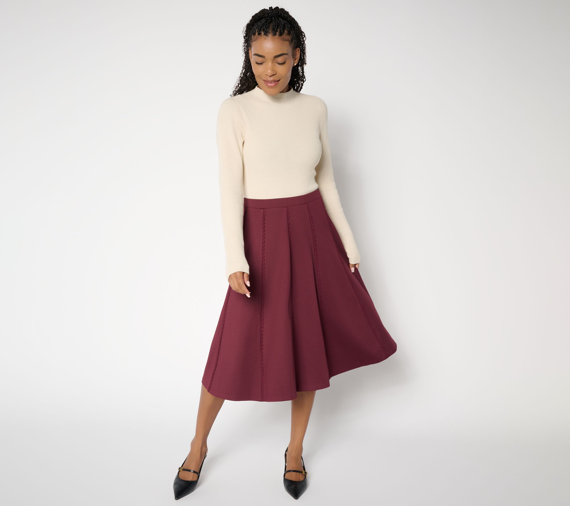 Have your midi fashion moment -- with extra sweetness! Rick-rack trim gives this pull-on skirt that something extra that pops for party looks, photo ops, and even your professional life. Style it with a soft sweater, a crisp button-front, or a silky blouse. From Studio ParkTM x Sandra Bennett.
