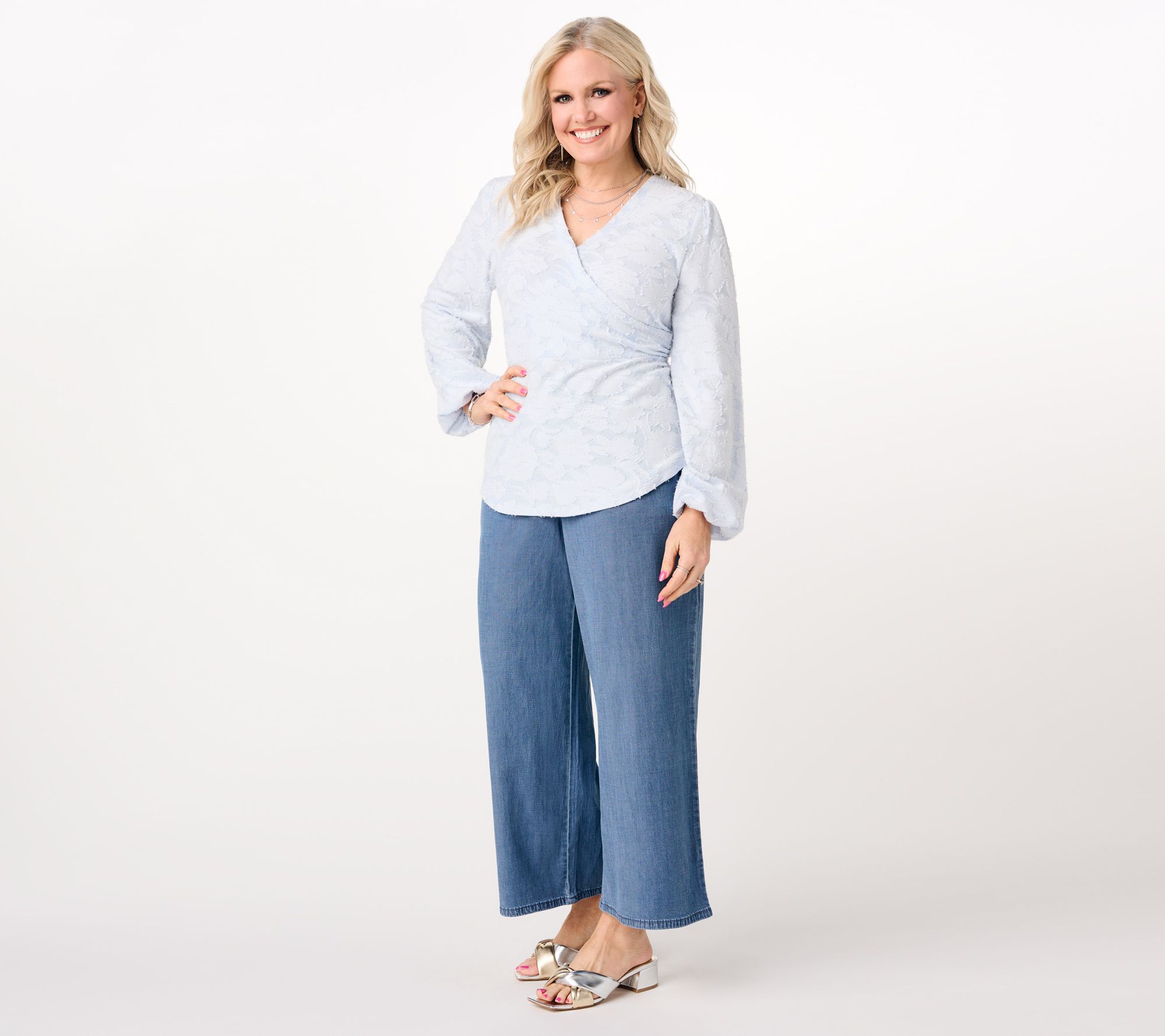 Easy elegance is yours with this Terri Conn top from her Studio ParkTM collection. Its faux-wrap design, sewn into the side seam with intricate tucks, adds sophistication to your everyday look. Designed for comfort, it features an elastic back waist and billowy sleeves for a silhouette that flows with every move, while shirring over the sleeve cap brings the charm. From Studio ParkTM x Terri Conn.