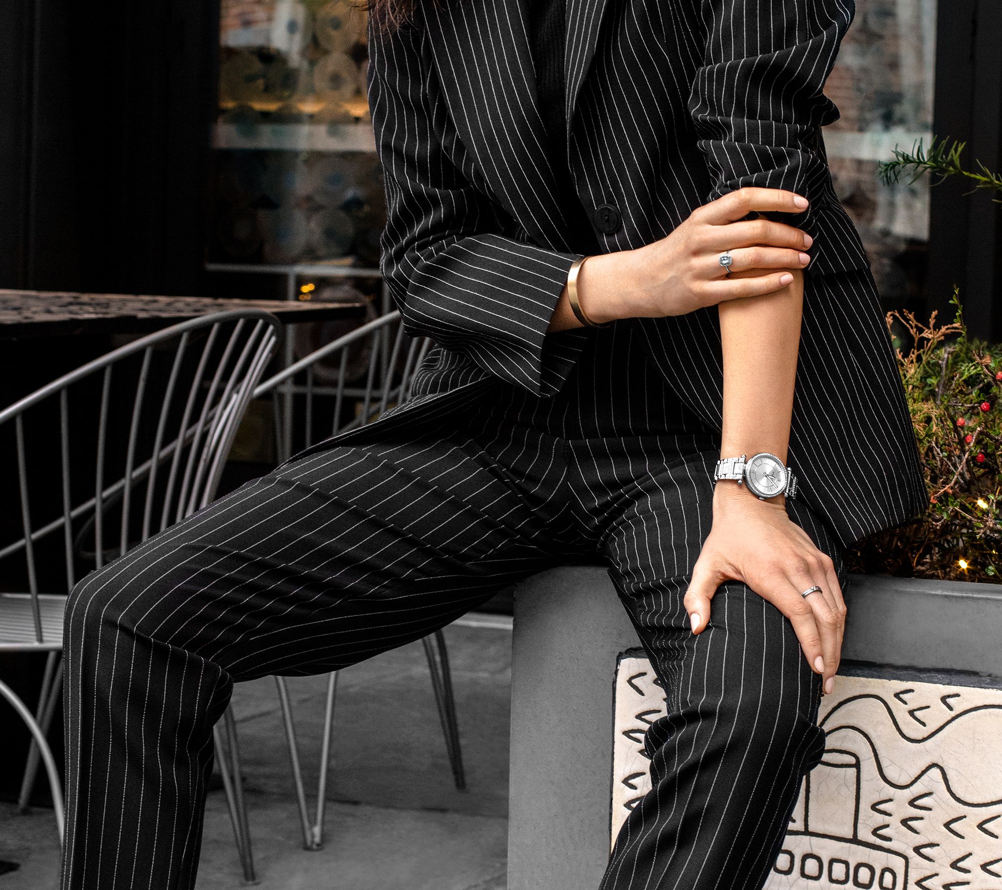 • Round case; mineral crystal glass; fluted crown; bezel with crystal inlay