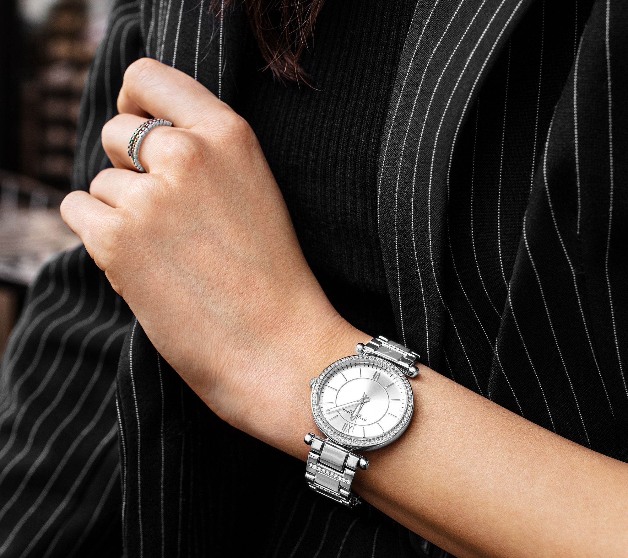 Silvertone and stainless steel add classic appeal to this watch. Crystal accents add that pop of shine that wows every time. From Stuhrling.