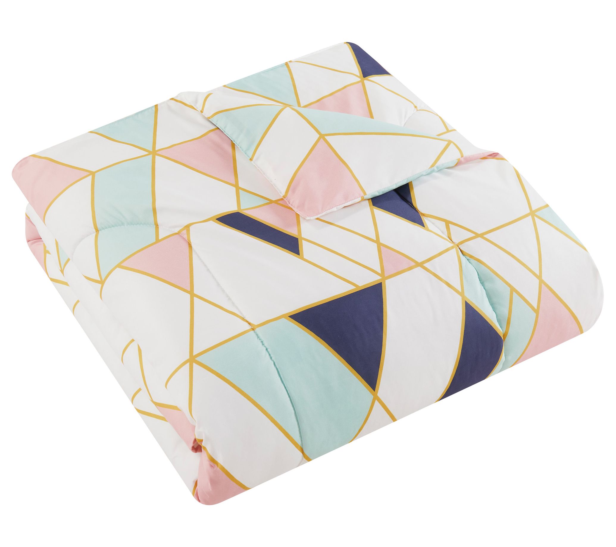 Update your space in fresh style! Bright hues and a bold geometric print make this bed-in-a-bag set a modern addition to any bedroom. From Style 212.