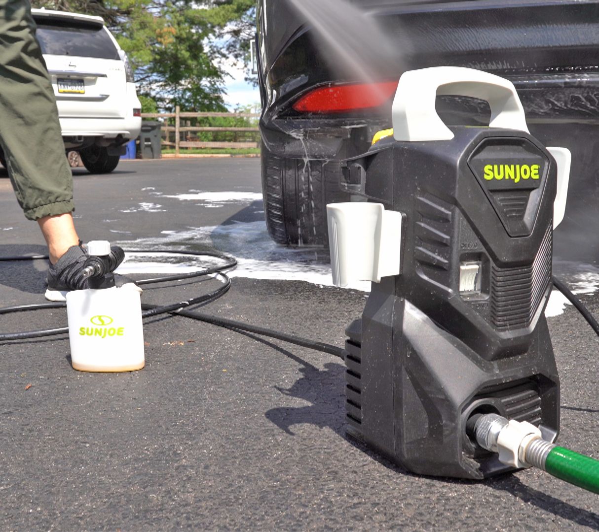 Weekend cleaning projects get a boost with the powerful versatility of this Sun Joe pressure washer, effortlessly tackling grime on driveways, siding, or patios. With three spray patterns, choose a gentle rinse or a deep scrub for stubborn spots, and use the included foam bottle to clean dirty cars or outdoor gear. And when the off-season leaves outdoor surfaces longing for a refresh, the 1500-PSI powerhouse efficiently revitalizes your personal oasis or recreation vehicle, accommodating medium-to-heavy-duty cleaning jobs with ease. Ideal for motorcycles, RVs, patio furniture, and barbecue grills, too, it offers easy transport around your property for all your cleaning needs. From Sun Joe®.