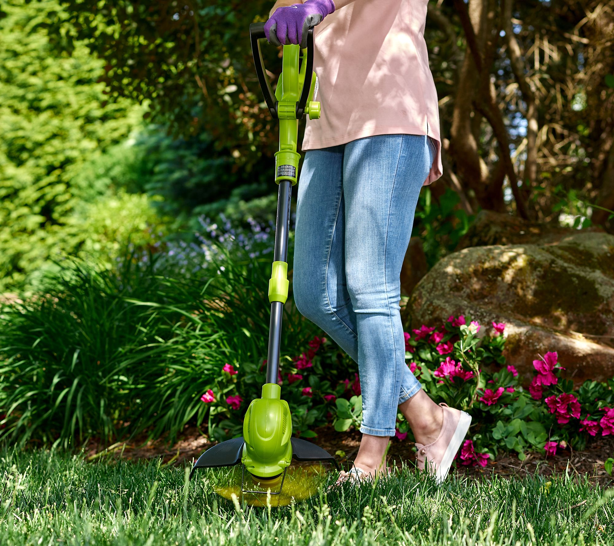 With this cordless cohort by your side, your yard will look great and your petunias are protected. A built-in guard helps keep the blades away from your delicate plants and flowers. From Sun Joe®.