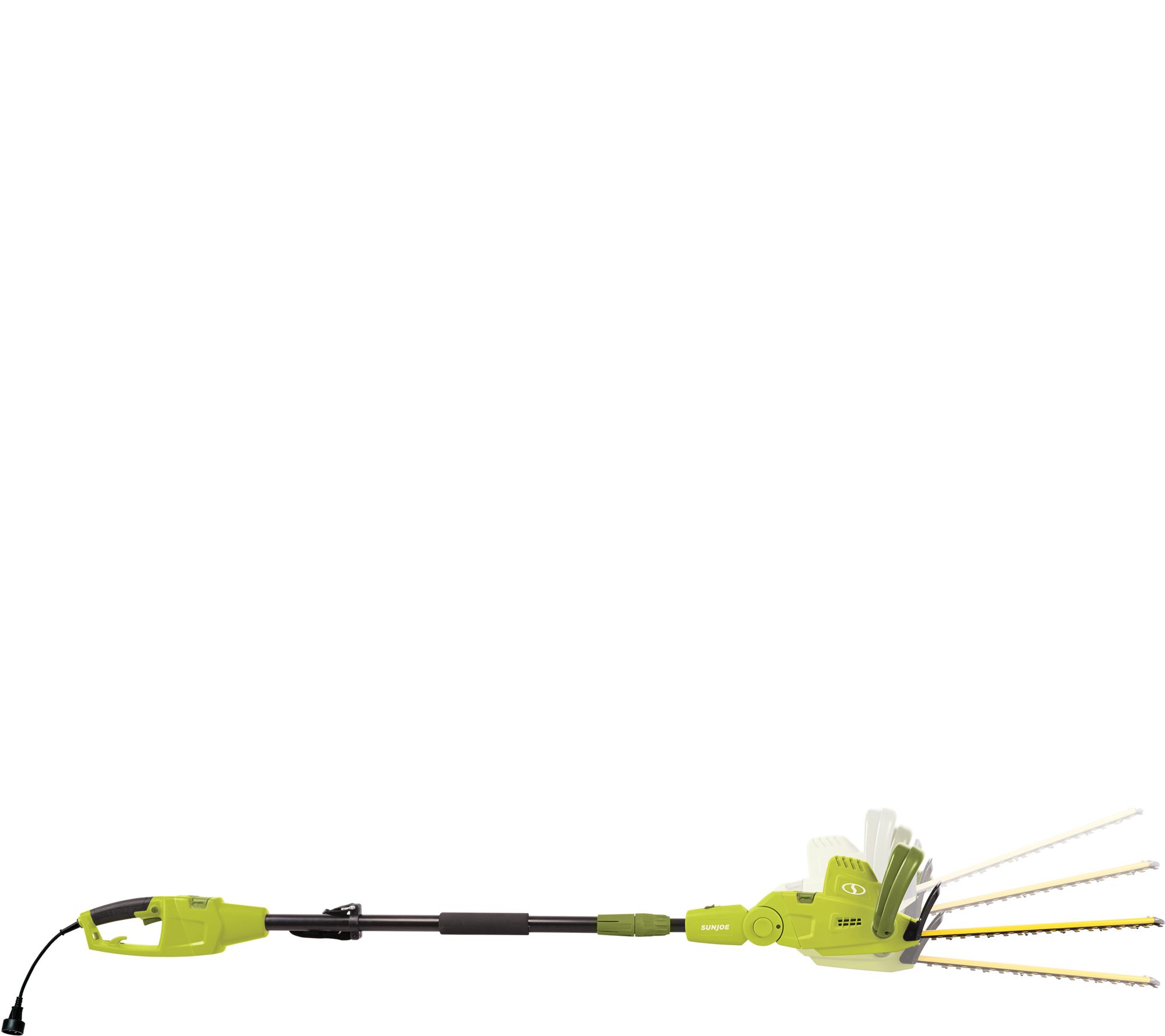 Ditch the ladder and shape up shrubs from solid ground with the Sun Joe 2-in-1 electric pole trimmer. The lightweight design can reach up to 13 feet of overhead brush to help give your tallest hedges clean-cut edges. When you're ready to go low, simply detach the cutting head and handle to quickly swap from pole hedge trimmer to handheld hedge trimmer in seconds. From Sun Joe®.