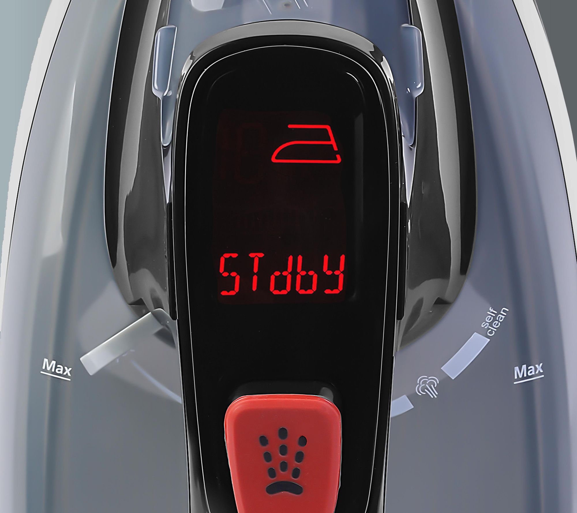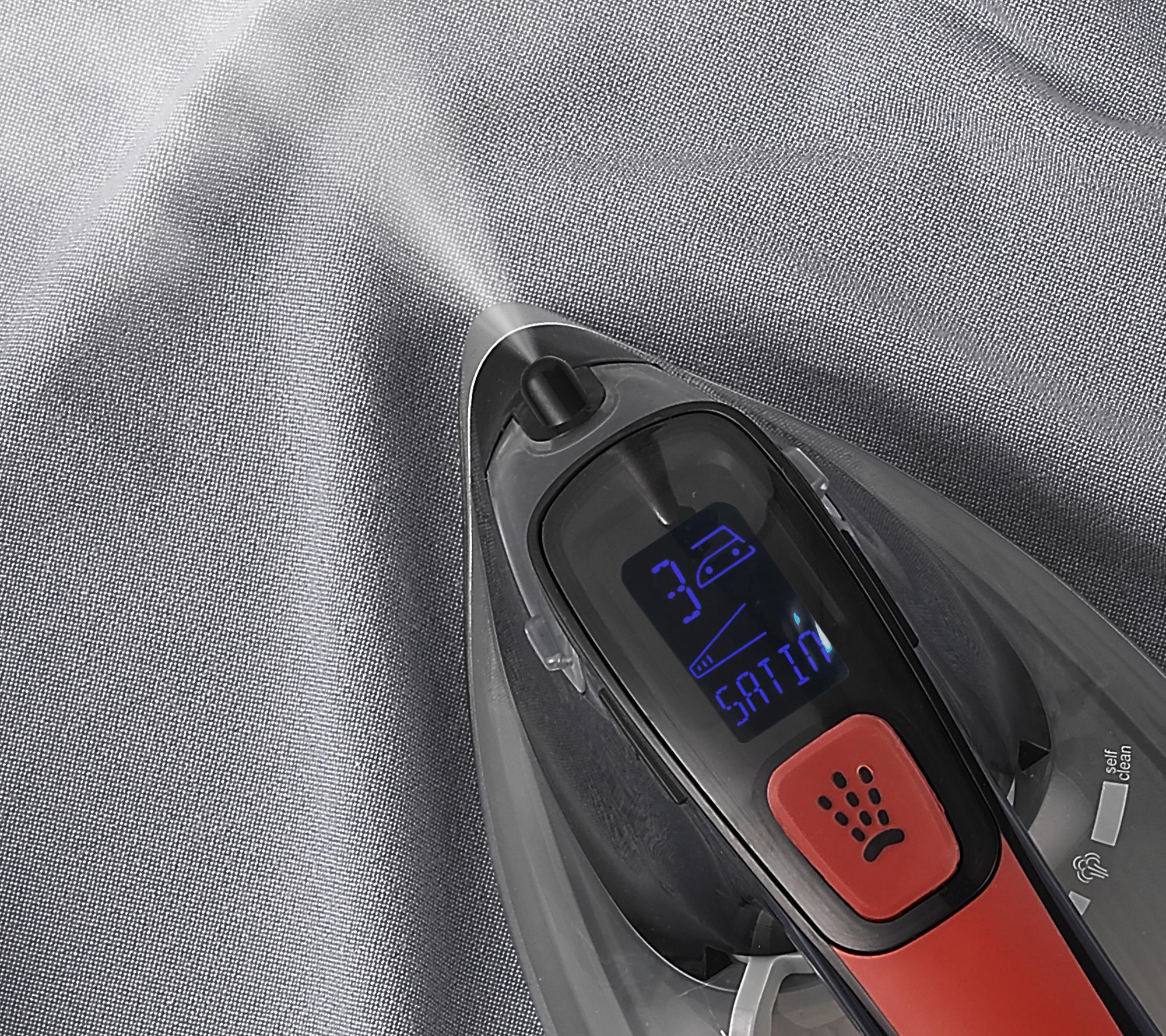 Experience the power of professional-grade garment care with this steam iron featuring an LCD multi-color display that offers 11 temperature settings for a variety of fabrics. It tackles stubborn wrinkles with ease, even on hanging garments, while the large water tank and retractable cord enhance convenience and efficiency. From Sunbeam.