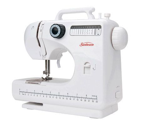 Sew easy to set up and use! Loaded with useful features, the SB1800 compact sewing machine performs like it's full-sized. Twelve stitches and a top drop-in bobbin with a clear view plate makes this machine the perfect tool for quick mending and hemming. From Sunbeam.