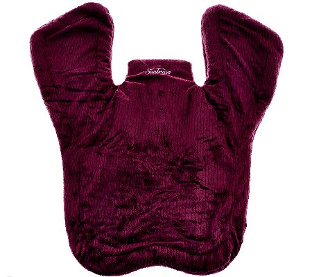 Everything you love about the Sunbeam XL neck and shoulder wrap---plus massage! This oversized heat wrap fully covers the neck, shoulders, and most of the back area for maximum comfort and heat transfer. Improved padding surrounds its massage motors to dampen the sound. Weighted edges and a magnetic closure help keep the wrap comfortably in place. From Sunbeam.