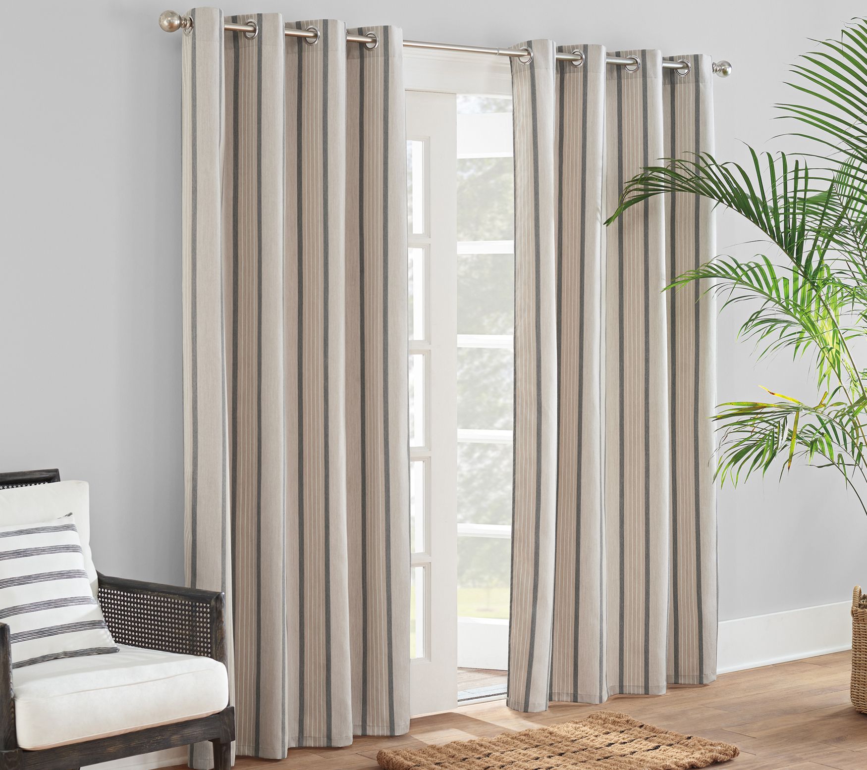 Sunbrella Cove Striped 52 in. W x 108 in. L Curtain Panel