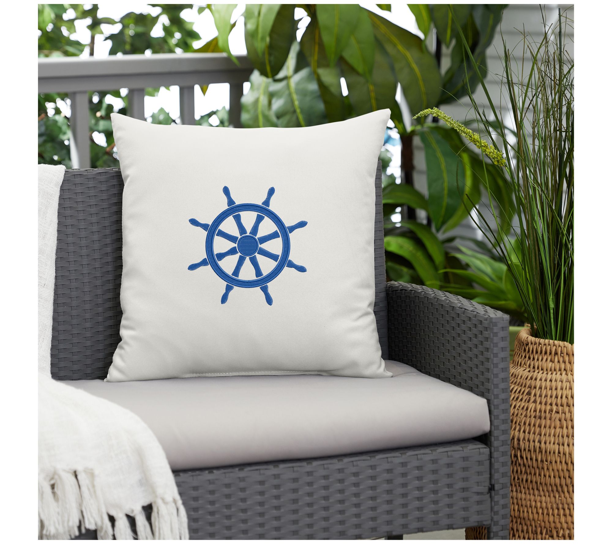 Sunbrella Indoor/Outdoor Embroidered Ship WheelPillow