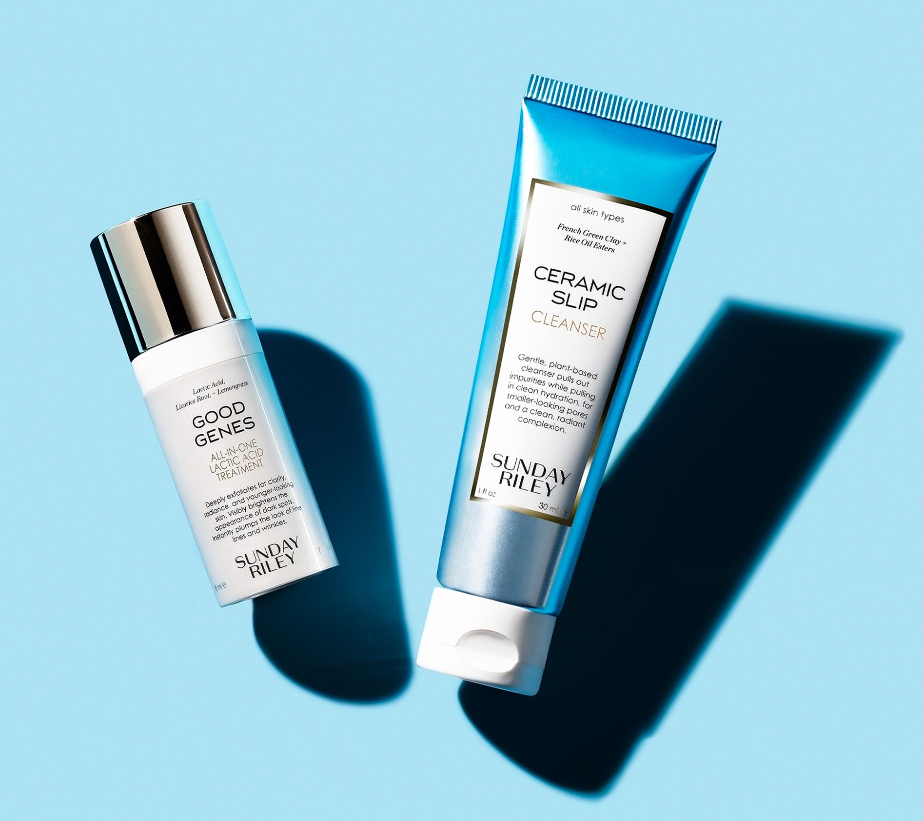 Discover two Sunday Riley cult-favorites in one easy, quick-fix kit. Good Genes All-in-One Lactic Acid Treatment exfoliates the dull surface of the skin for radiant and younger-looking skin while visibly brightening the appearance of skin. It instantly plumps the look of fine lines and wrinkles in about three minutes. Ceramic Slip Cleanser is a gentle, plant-based, clay cleanser that pulls out impurities while providing skin hydration and a clean, radiant-looking complexion. These are solutions for the rough texture and dullness of the skin.