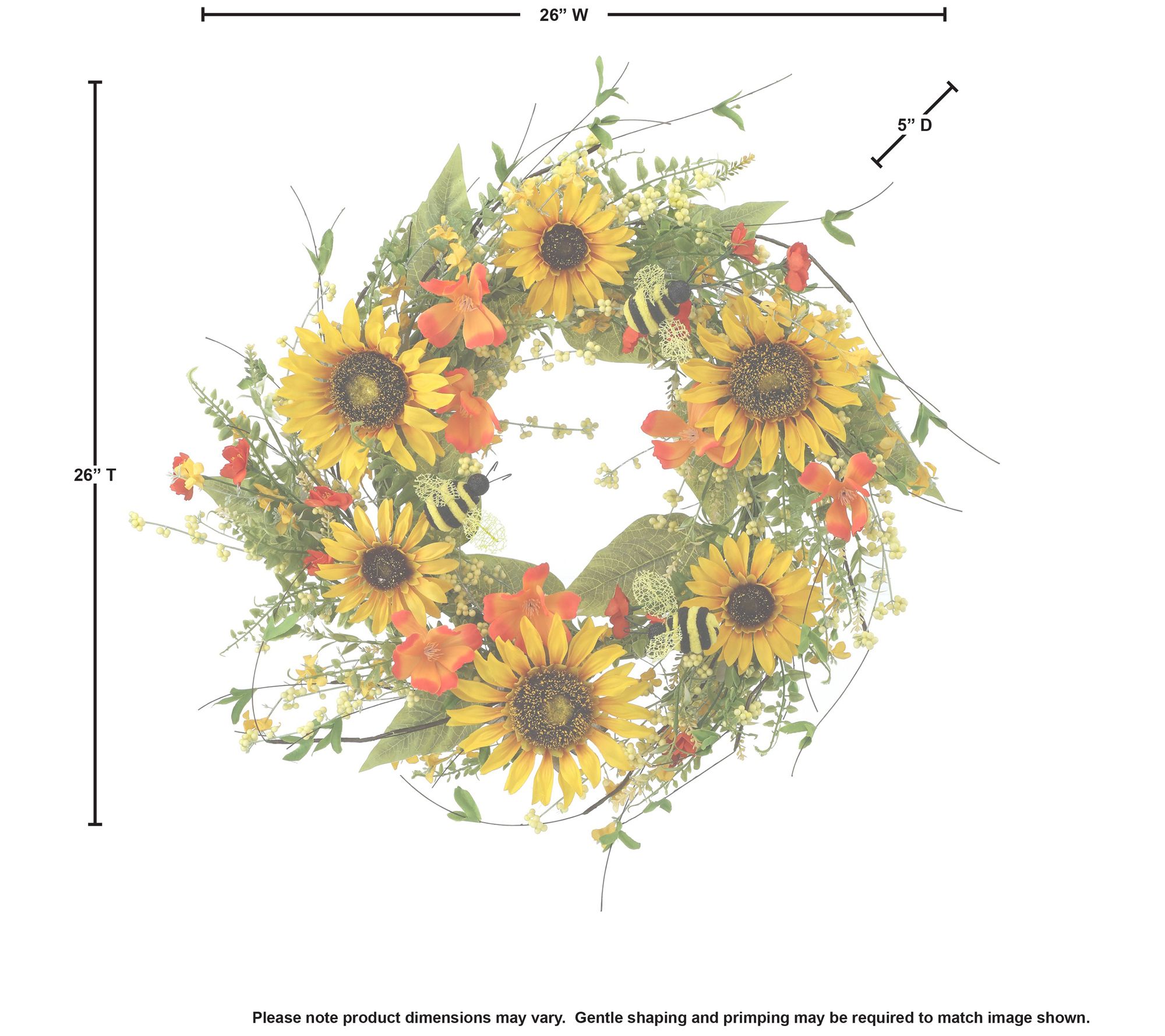 Sunflower And Honey Bee Wreath 26" by Valerie
